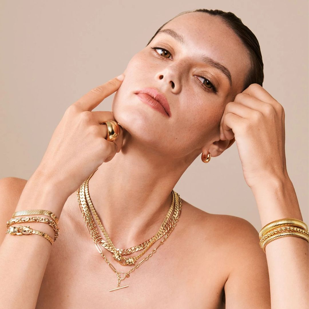 Alberto Amati is a fine jewelry brand known for its elegant designs crafted in 14K gold, including yellow, white, and two-tone pieces. The brand offers a diverse range of jewelry, such as necklaces, bracelets, rings, and earrings, often featuring intricate link patterns, polished finishes, and occasional gemstone accents.