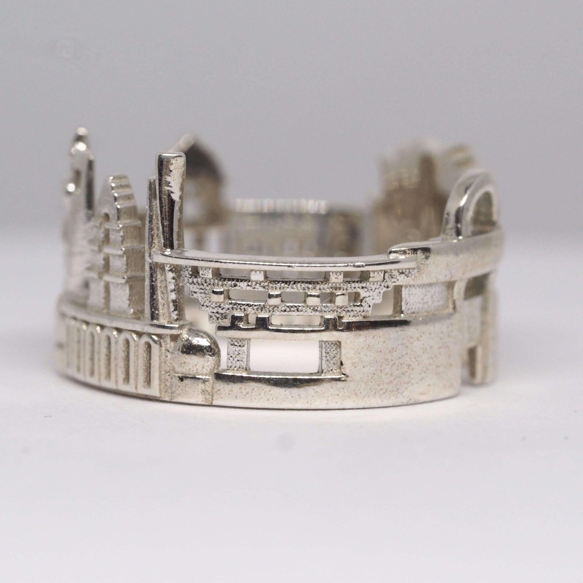 Be it majestic landmarks or striking skylines, architecture constantly leaves us in awe. Built to stand the test of time, it has an enduring quality to it, much like jewelry. Designers like Rossella Ugolini, Béatrice Oggier, Ola Shekhtman, Eva Lund and Dora Kovacs draw inspiration from architecture while paying meticulous attention to design details and craftsmanship. Rossella masterfully plays with geometry, light and shades to embody the beauty of Italian castles. Béatrice captures the regal charm of Indian palaces. Ola ingeniously crafts rings inspired by iconic cityscapes. Eva cleverly uses vertical, clean lines to denote Manhattan’s skyscrapers , while Dora’s modern pieces reflect the details of old doors in historical cities.