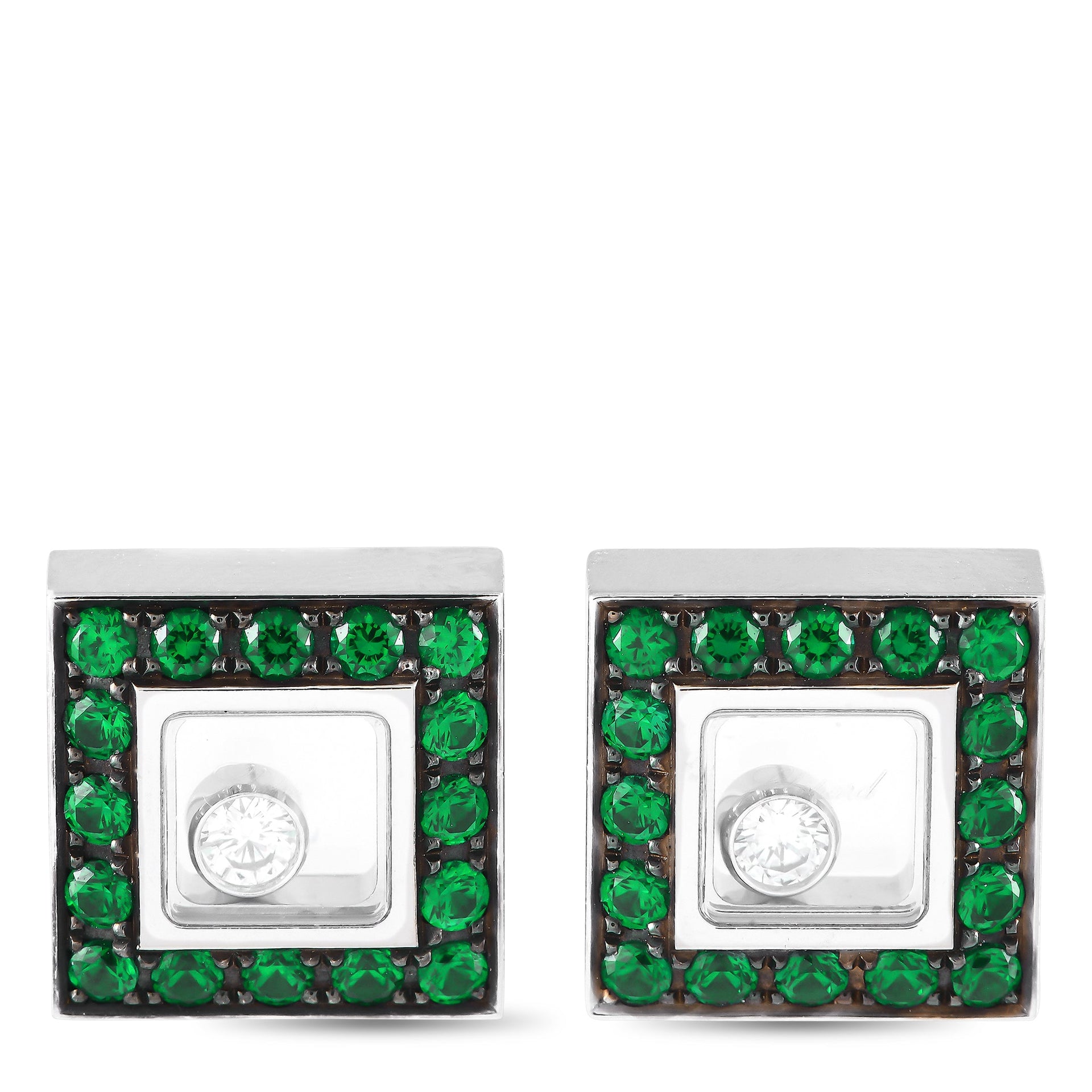 Chopard Happy Diamonds 18K White Gold Diamond And Emerald Earrings CH37-102124