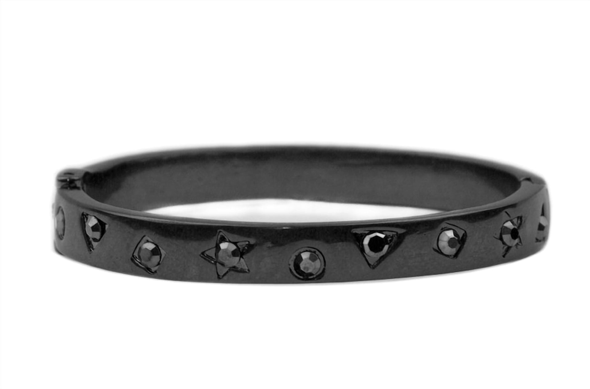 Black Resin Bangle With Multi-Color Crystals