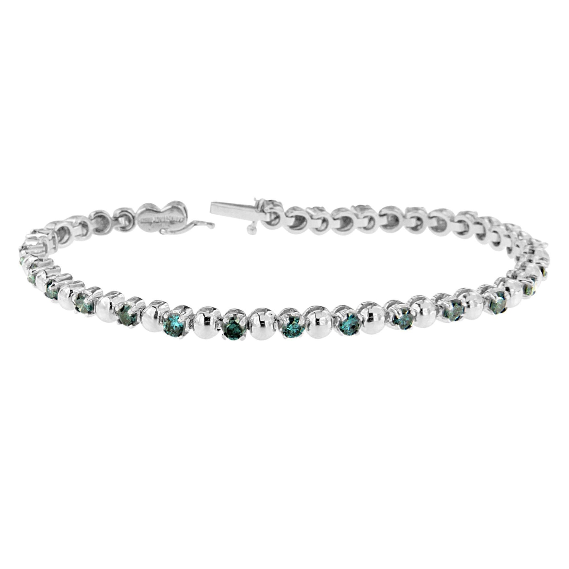 8 ct Blue & White Diamond Tennis Bracelet 14K White Gold 7'