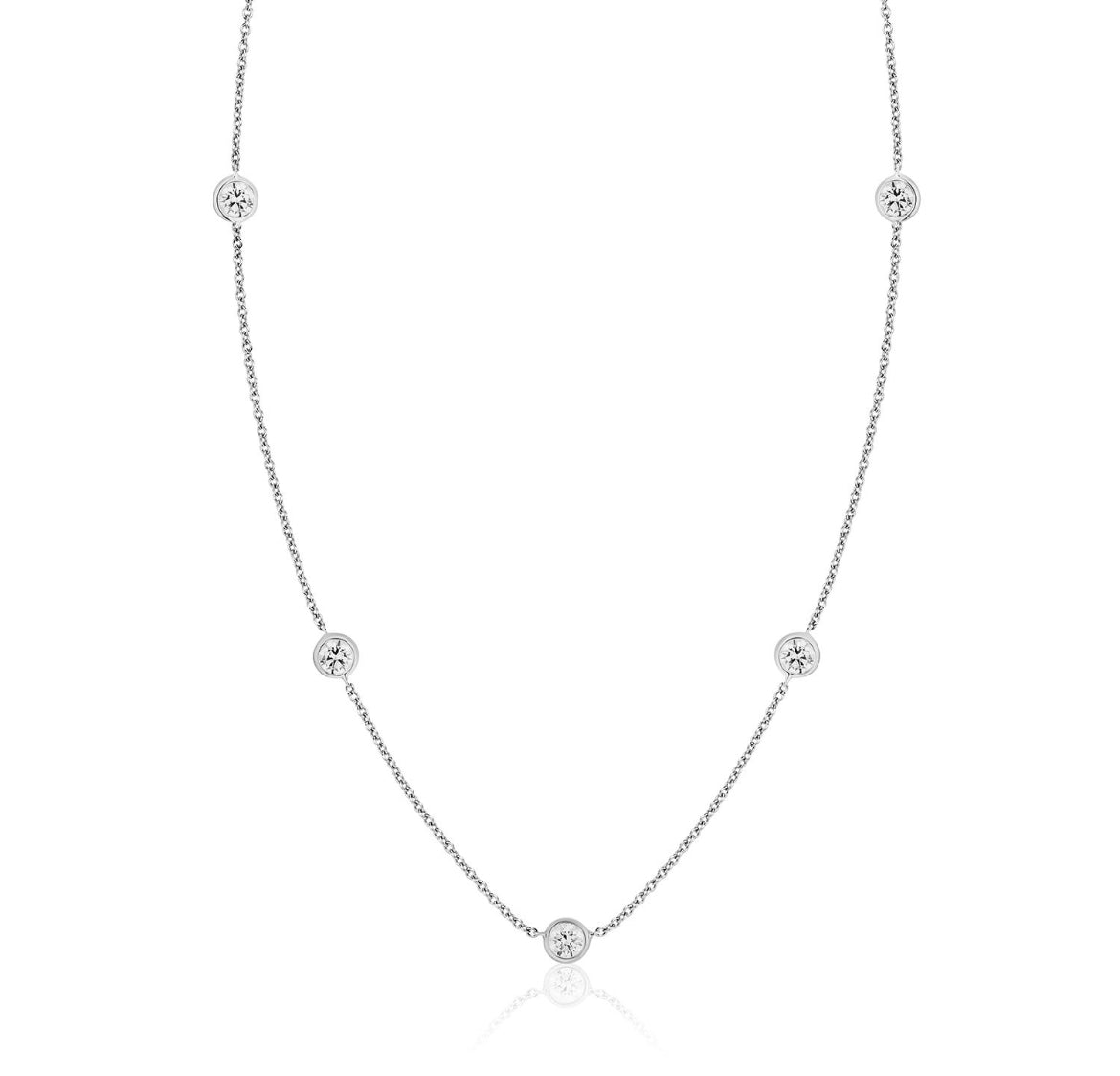 Suzy Levian 14K White Gold 4/5 TDW Bezel Diamond Station Necklace