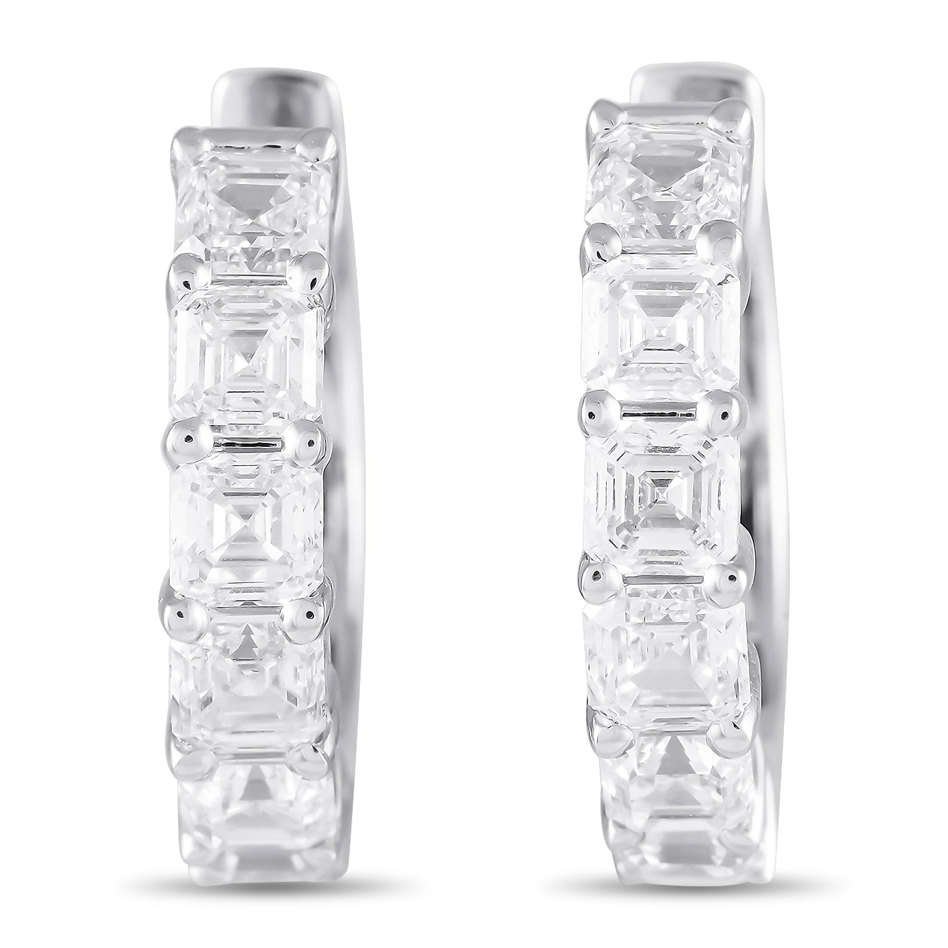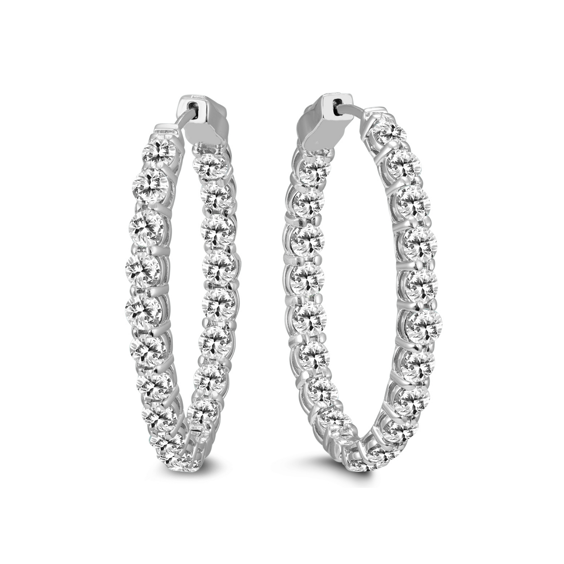 14kt white gold diamond in-out round hoop earrings comprised of 5.00 cts tw