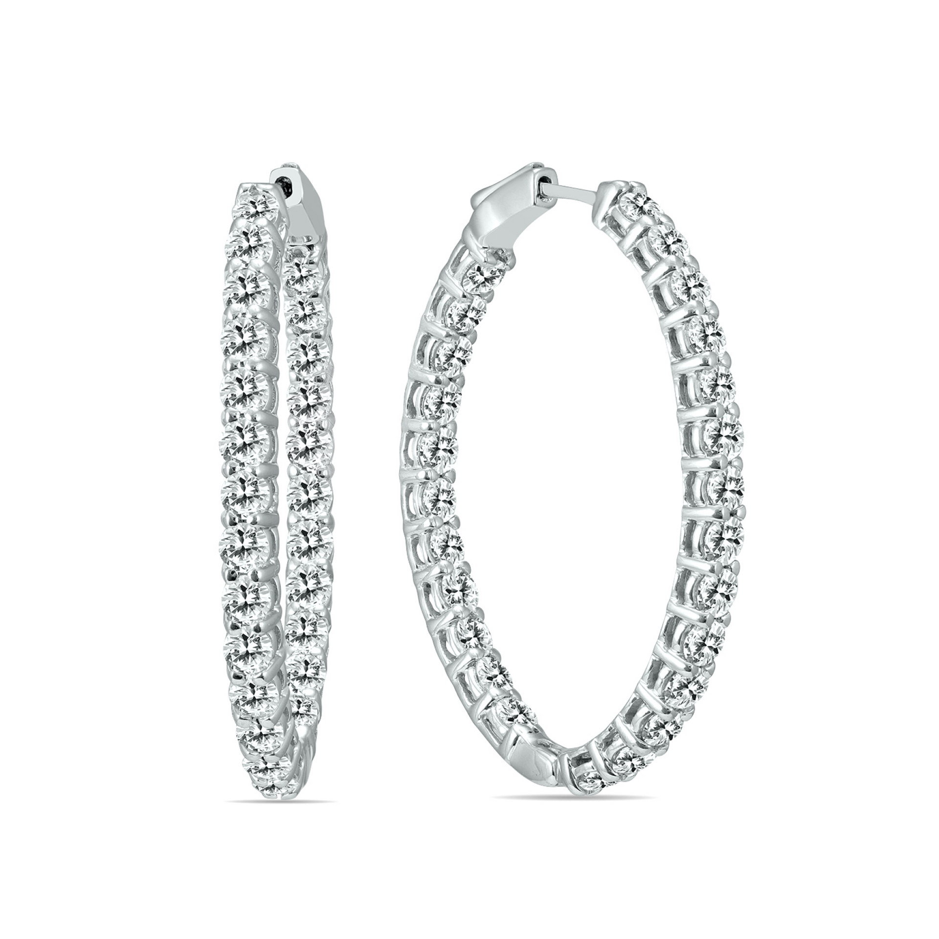 14kt white gold diamond in-out round hoop earrings comprised of 5.00 cts tw