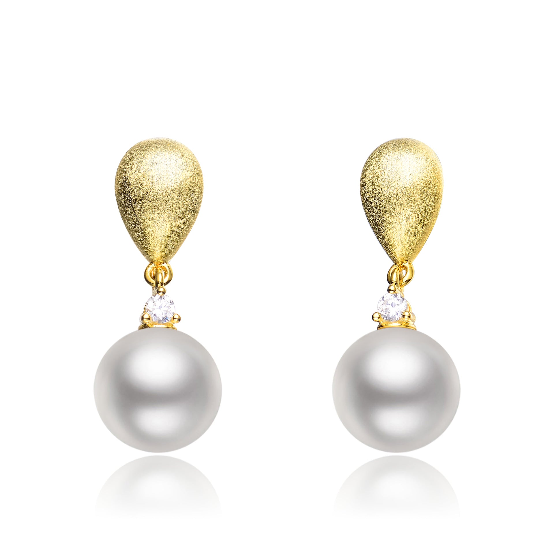 C.z. Sterling Silver Gold Plated Fleur De Lis Round Drop Pendants