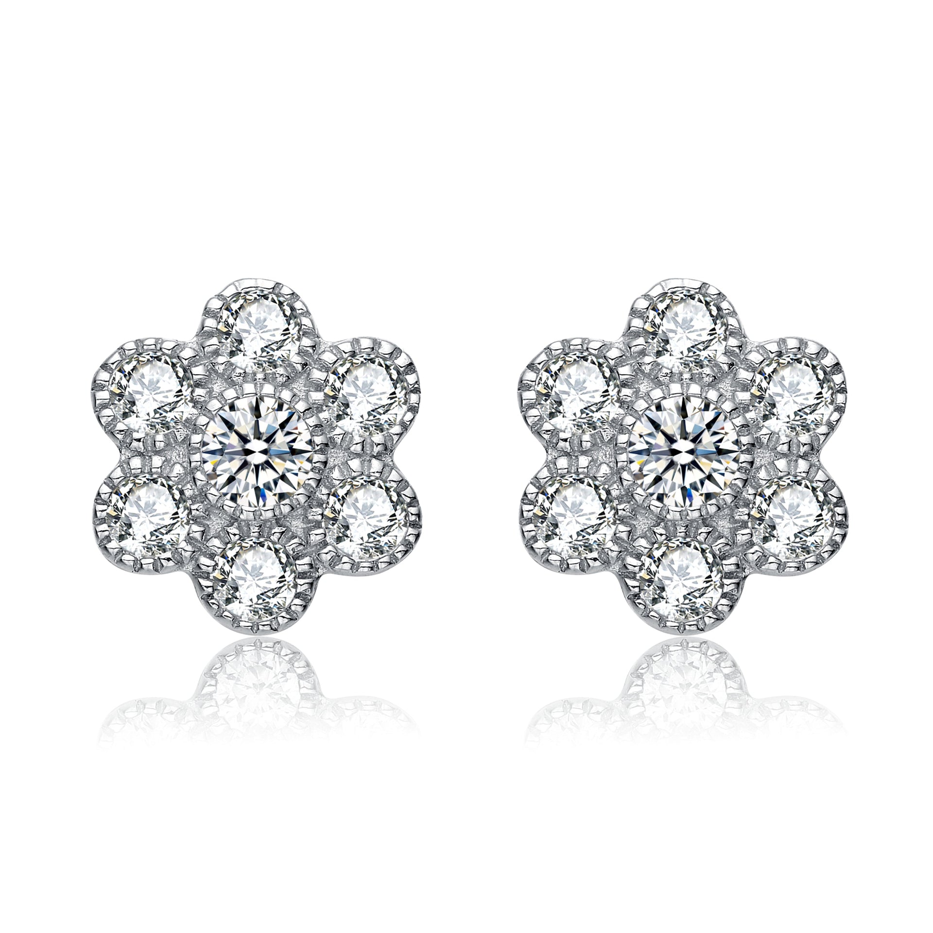 C.z. Rose Plated Sterling Silver Square Shape Stud Style Pendant