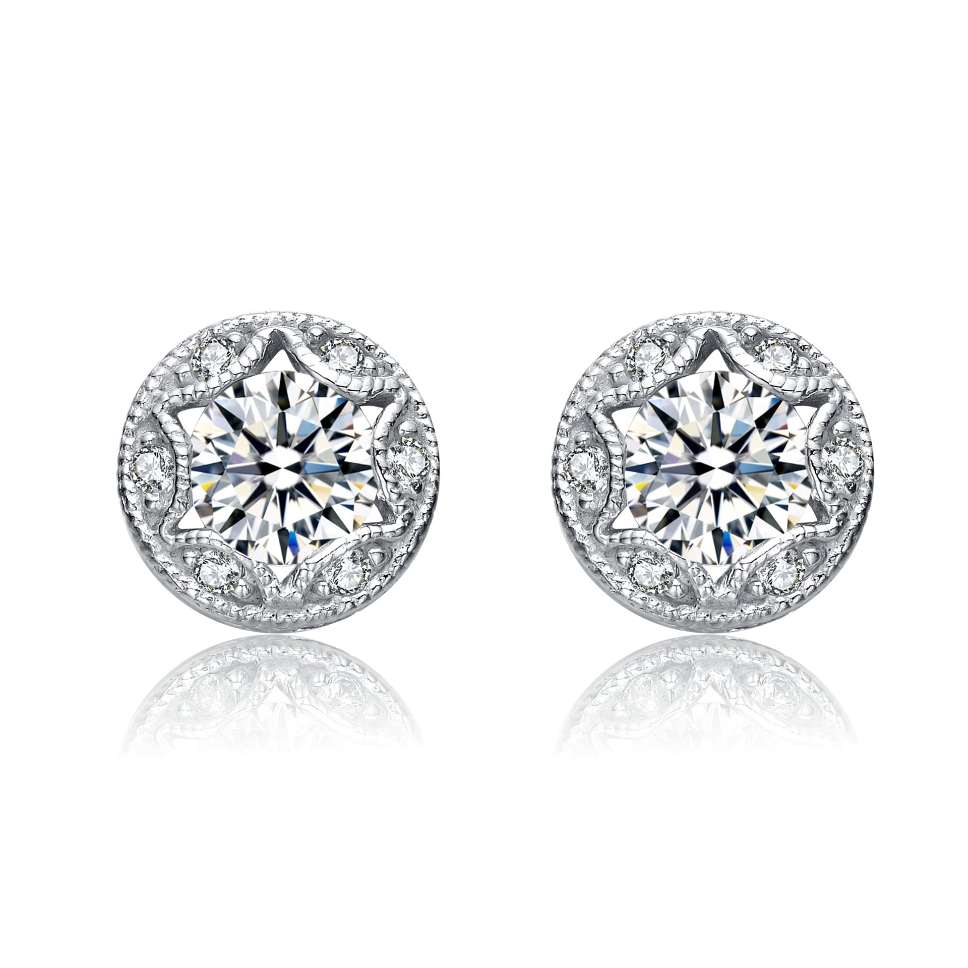 C.z. Sterling Silver Rhodium Plated Classic Round Pendant