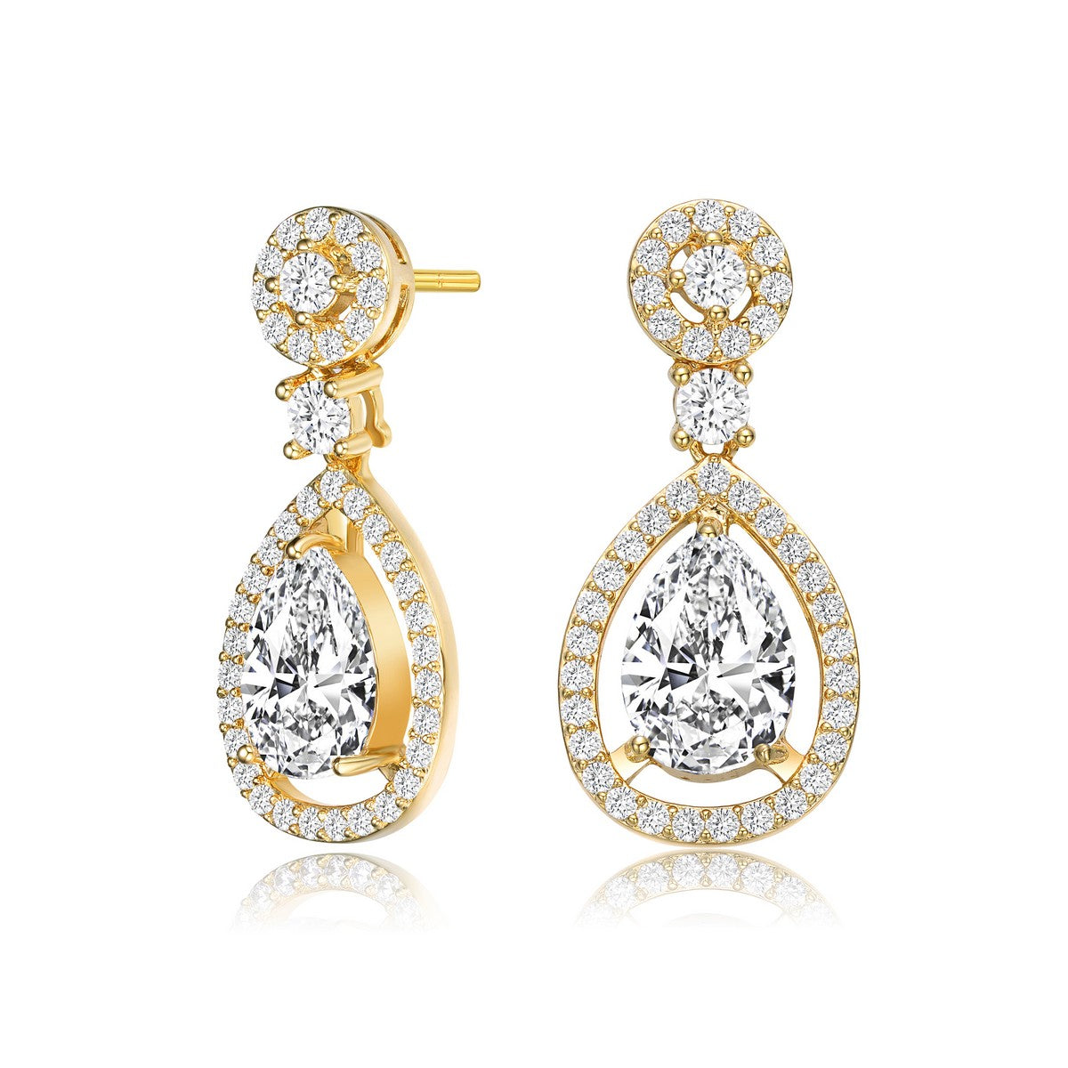 14k Gold Plated with Diamond Cubic Zirconia Raindrop Pear 2-Stone Pendant Necklace