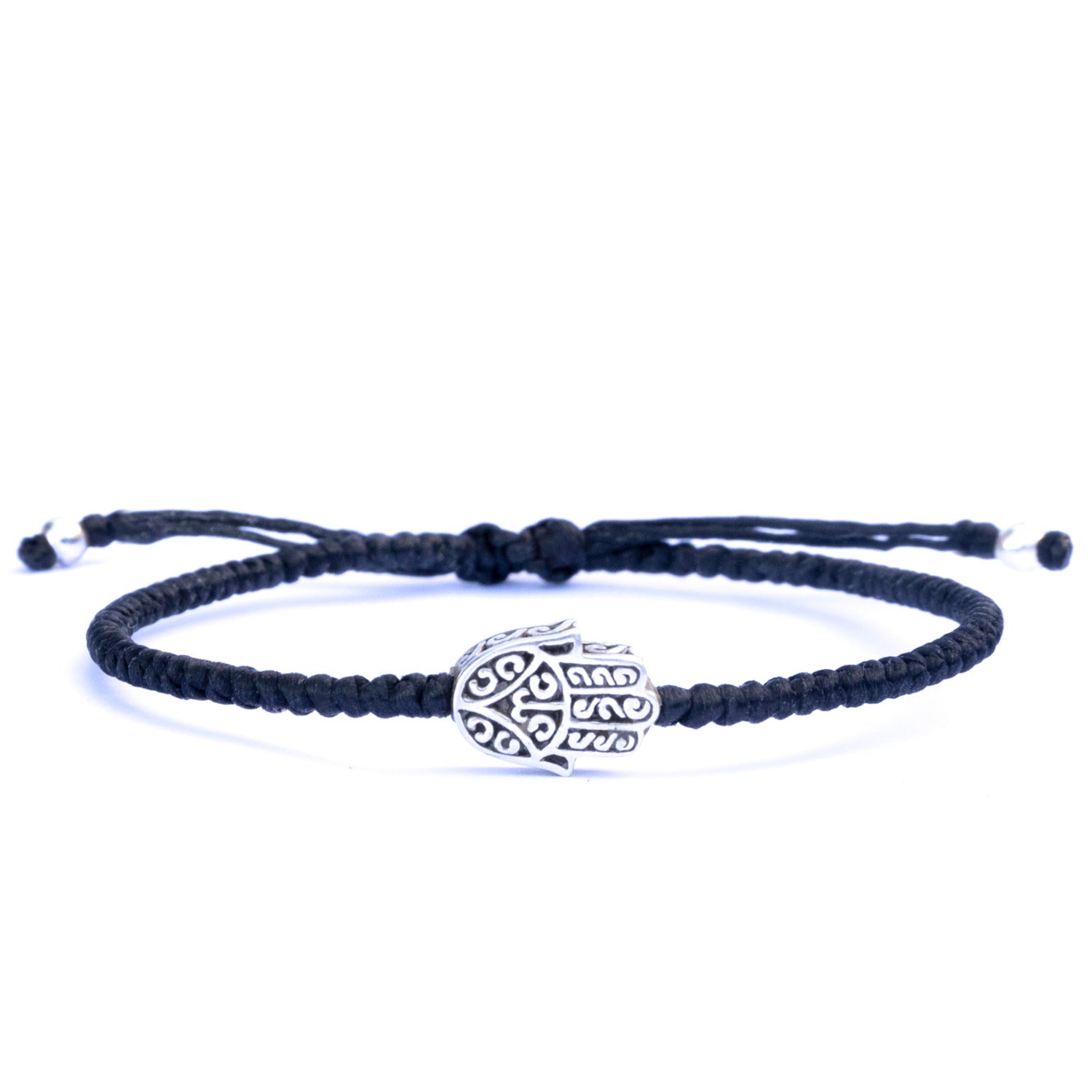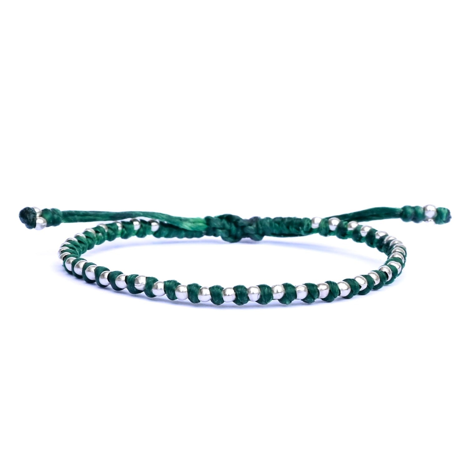 Sterling Silver Apple Green Rope Hamsa Bracelet