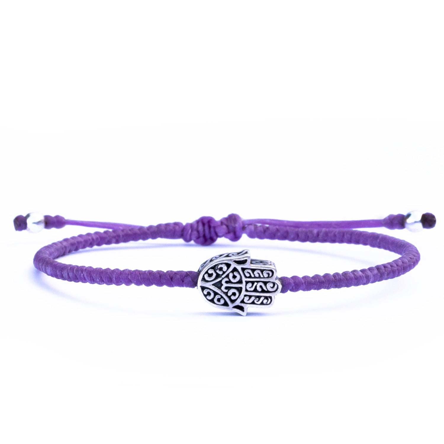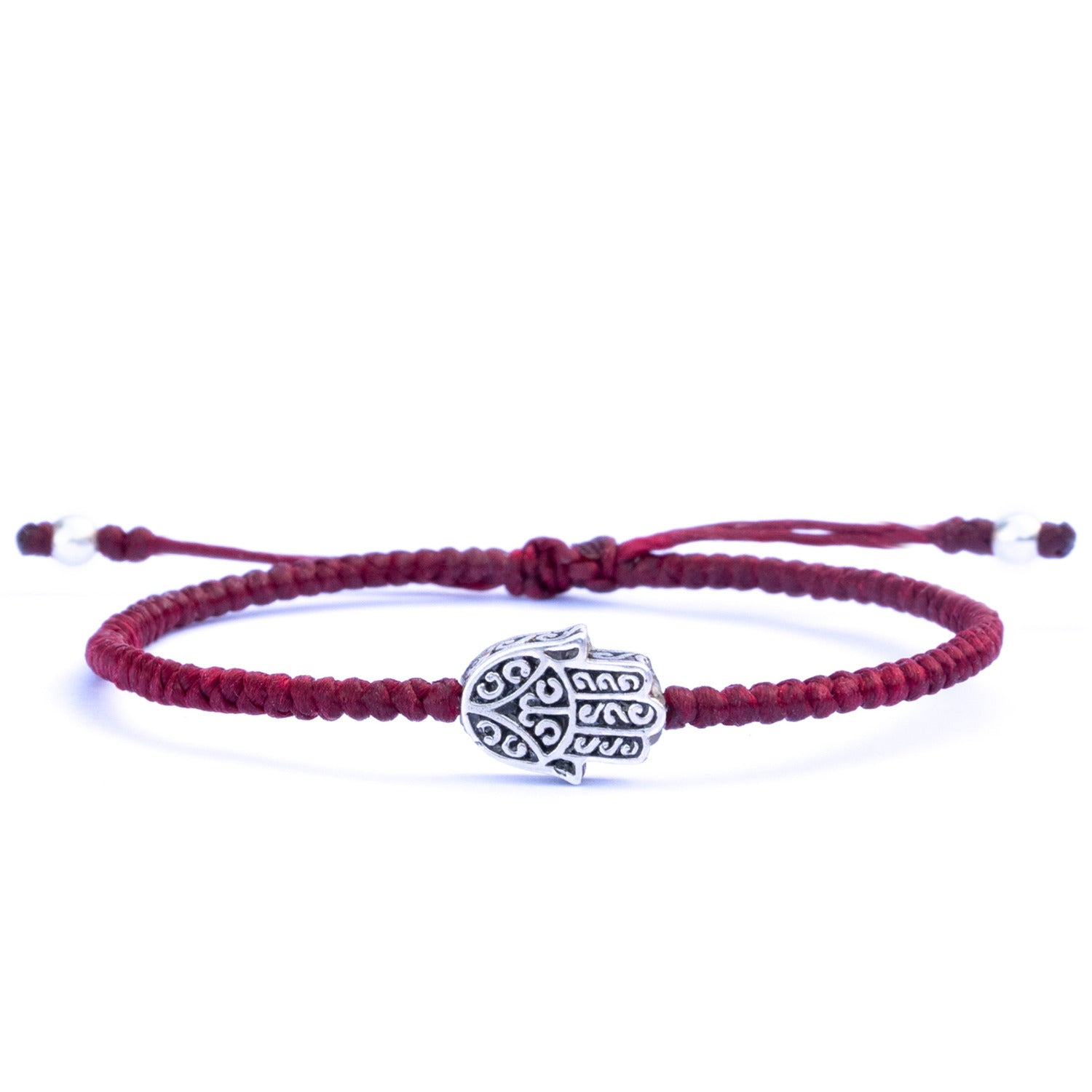 Sterling Silver Wine Red Rope Hamsa Bracelet