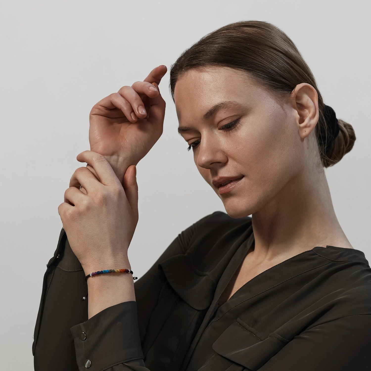 Rainbow Bracelet Sterling Silver Waterproof Vegan Cord