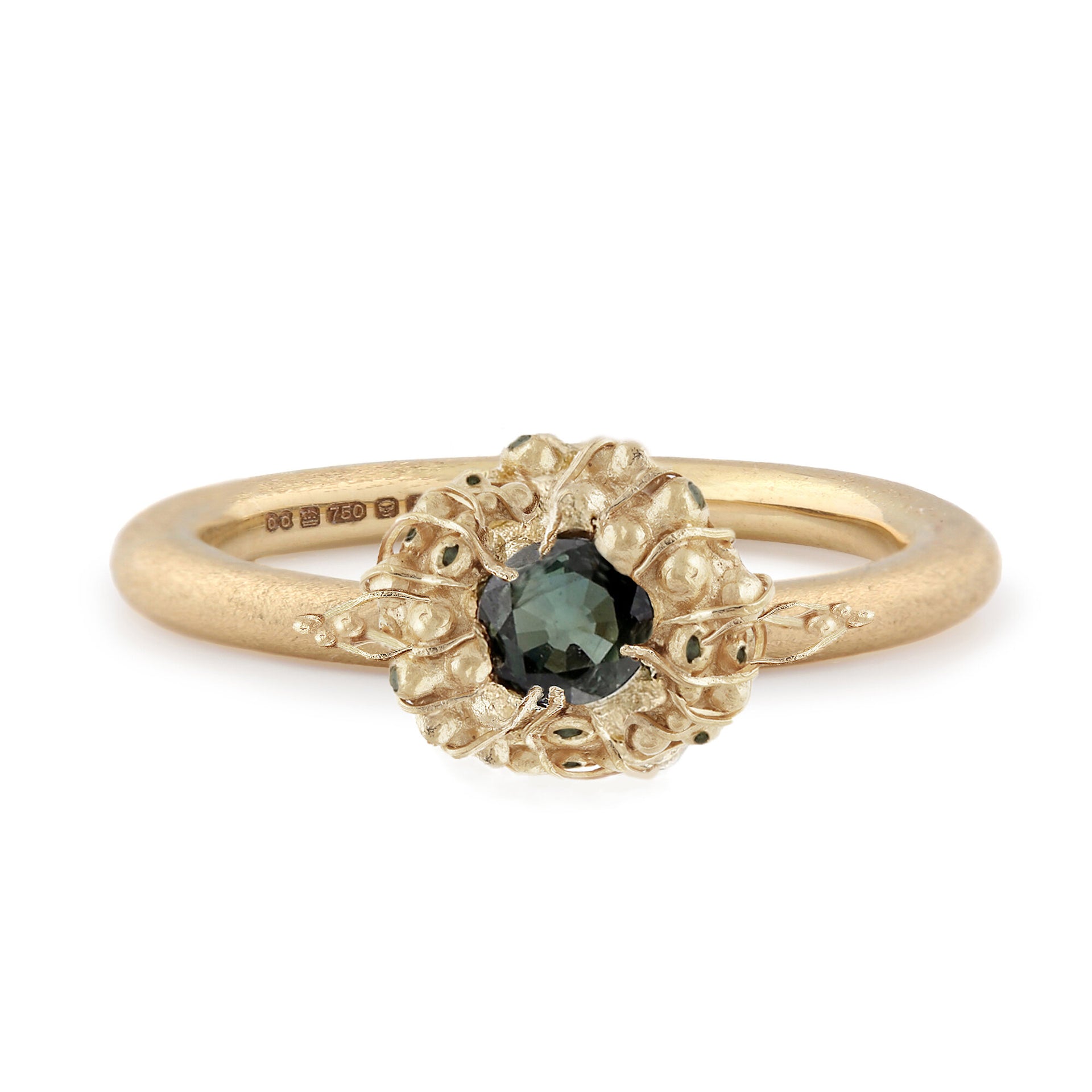 Circe Teal Sapphire and Yellow Gold Engagement Ring