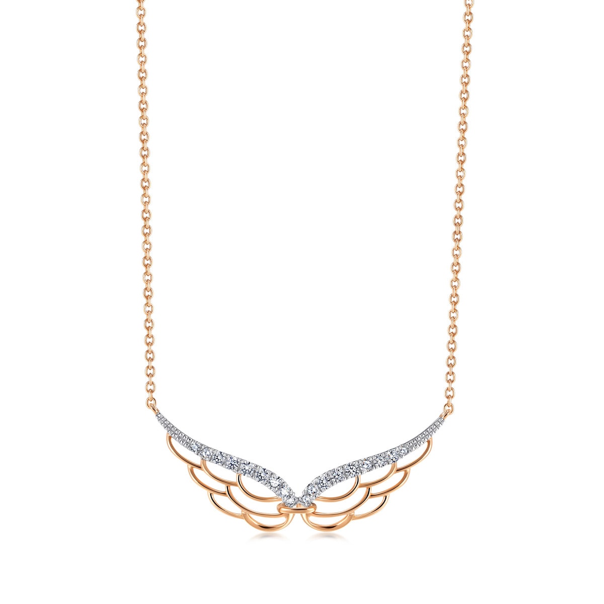 18K White & Red Gold Diamond Cupid Wings Necklace
