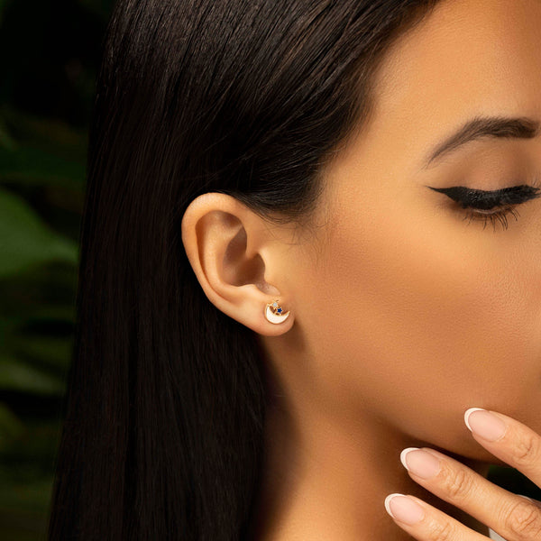 Embrace the Light - Enamel Moon & Star Diamond Stud Earrings