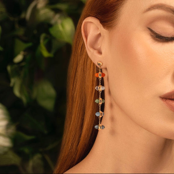 Rainbow of Hope - Multi Stone Pointer Chakra Drop Earrings