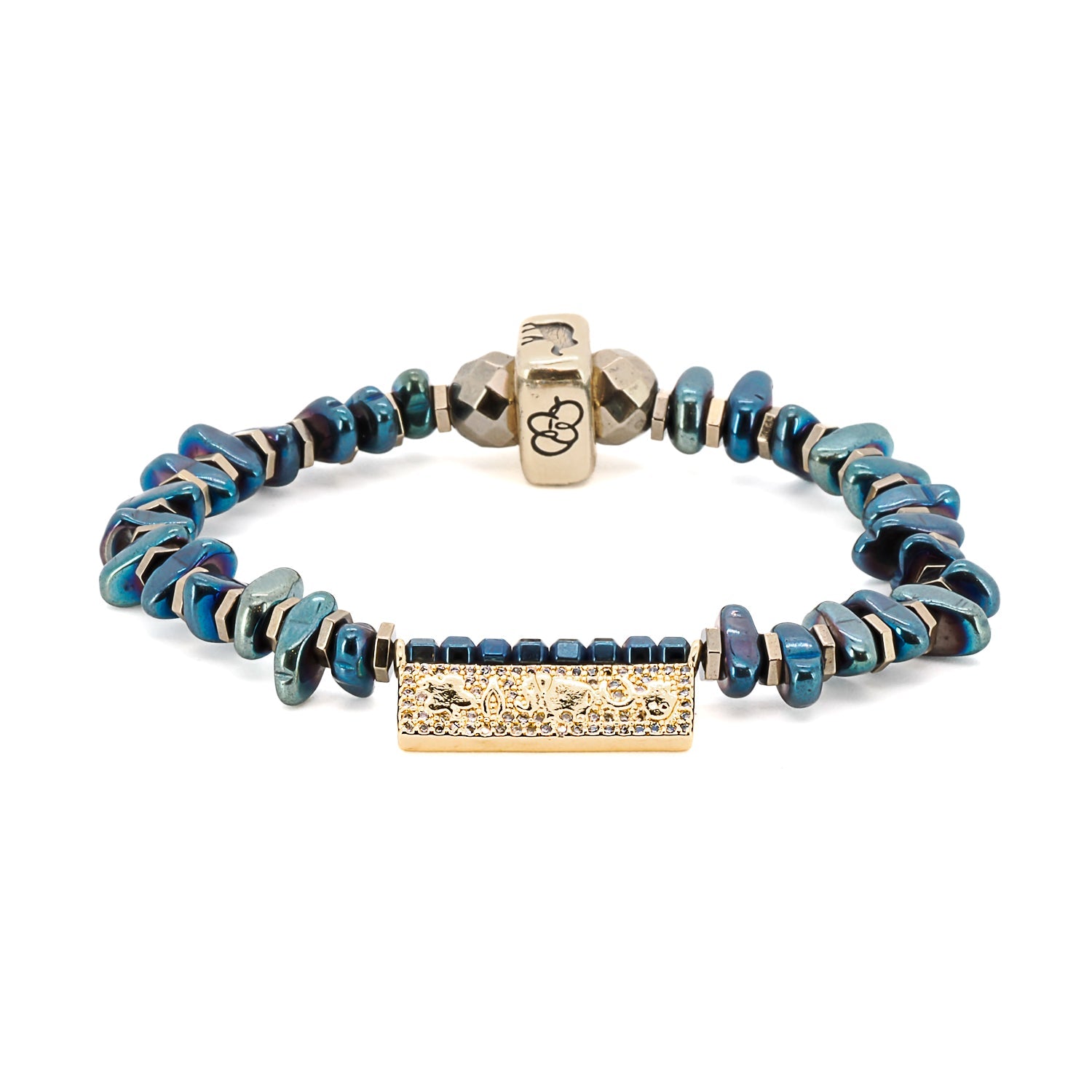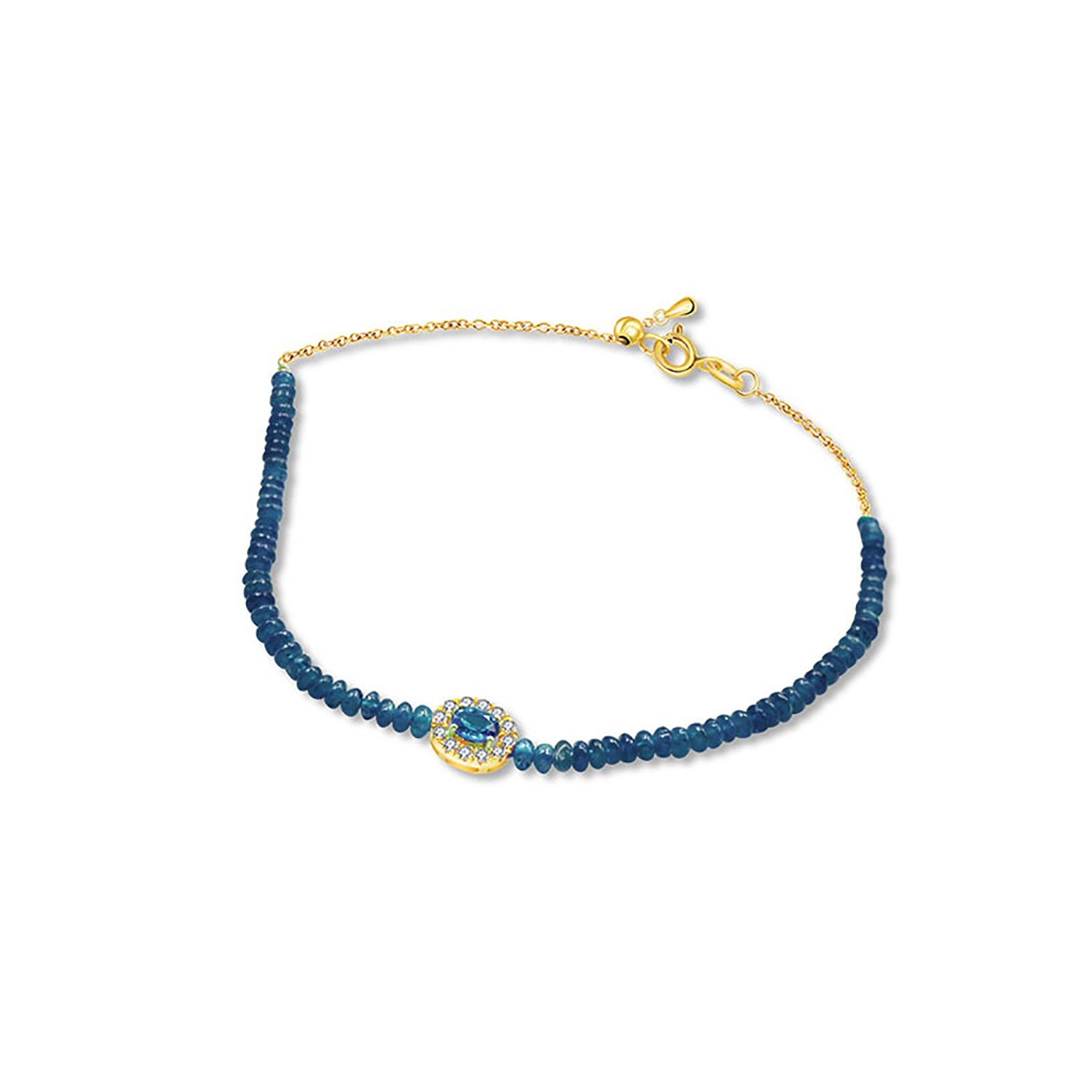 Silver Flat-Bead Bracelet With Blue Sapphire In Black - The Guardian