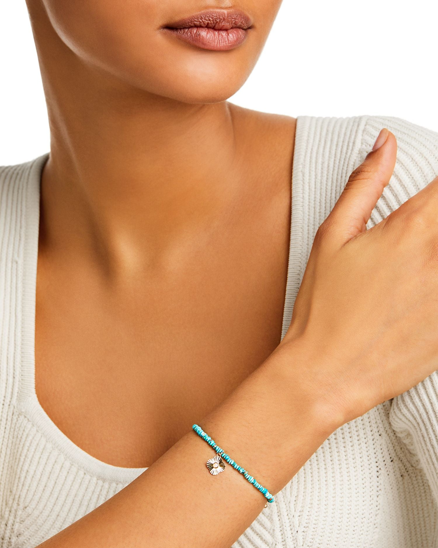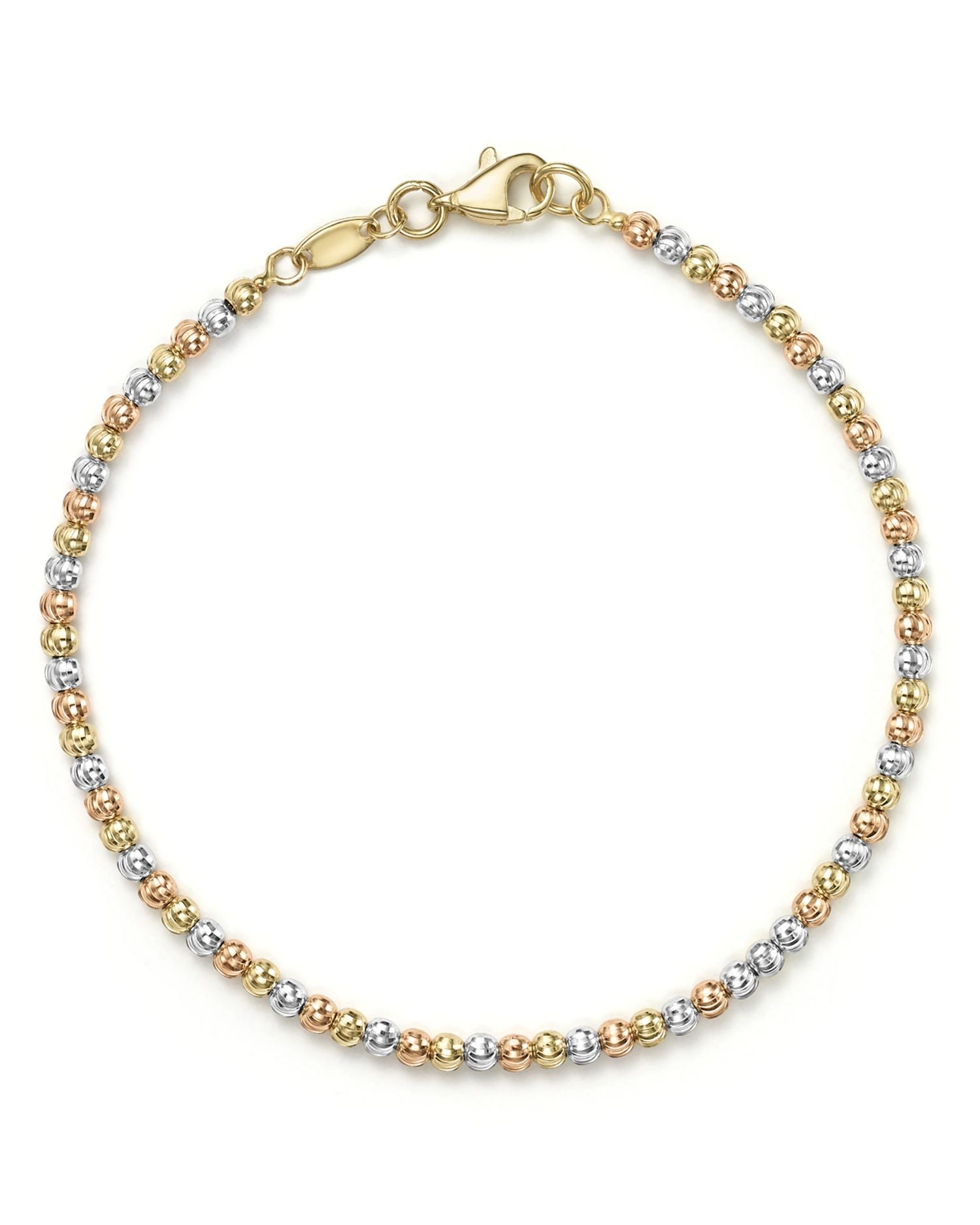 Tiny Monstera Leaf 14kt gold beaded charm bracelet with diamonds