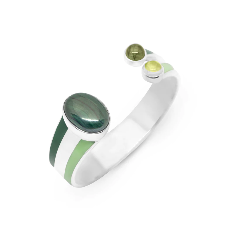 Sleek, stylish, and effortlessly chic. Designed in fine gold, gold vermeil, and sterling silver, these modern cuffs feature both precious and semi-precious gemstones, offering a versatile balance of sophistication and statement-making design. Whether worn solo or stacked, they add the perfect touch of everyday glamour.