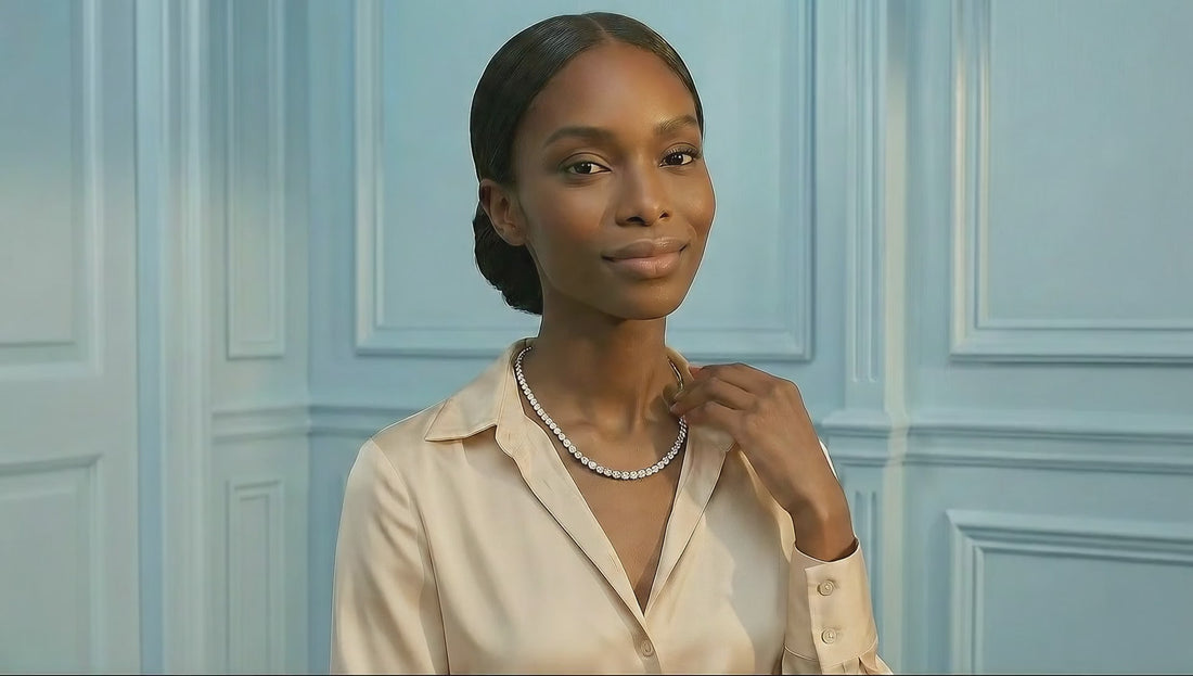 Consider length and proportion as well. A 15-to-16-inch choker length offers a youthful, modern vibe that sits high on the neck, while longer strands provide a more traditional drape. Graduated styles (where stones get larger toward the center) draw the eye inward and elongate the neck, while uniform sizes create a clean, graphic line perfect for stacking. In terms of metal, sterling silver amplifies the icy white tones of the stones, while gold vermeil provides a warm, rich contrast.