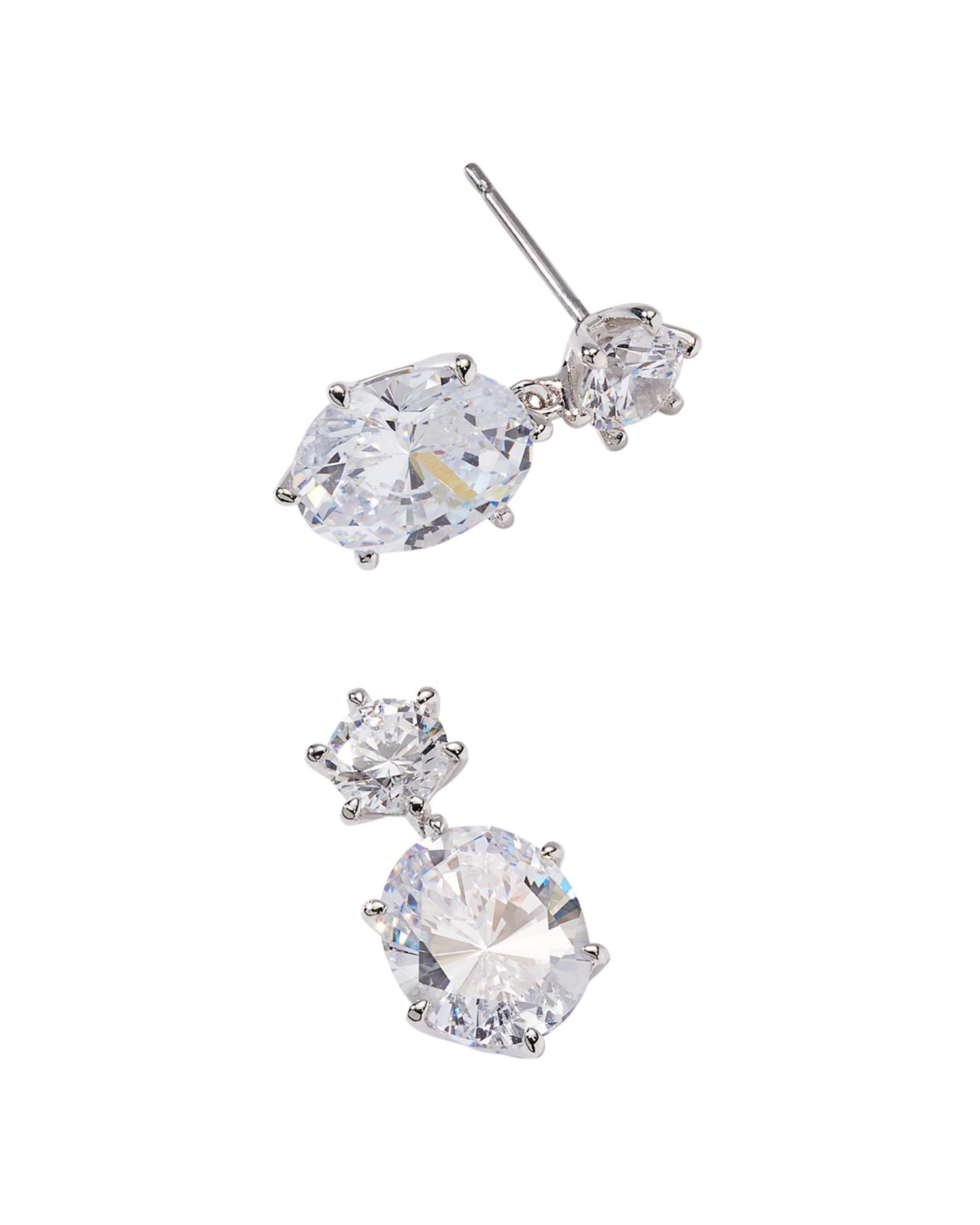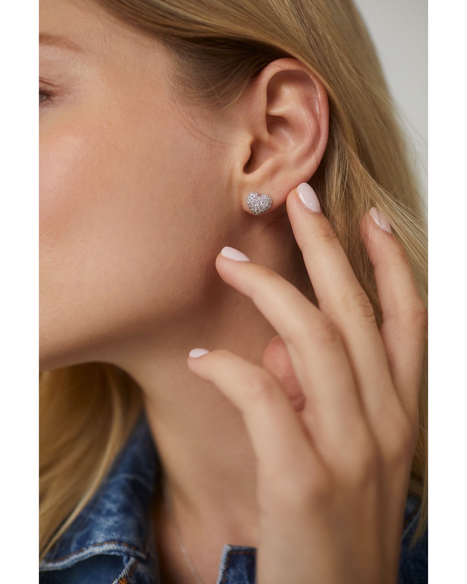 Cubic Zirconia Heart Stud Earrings in Rhodium Plated