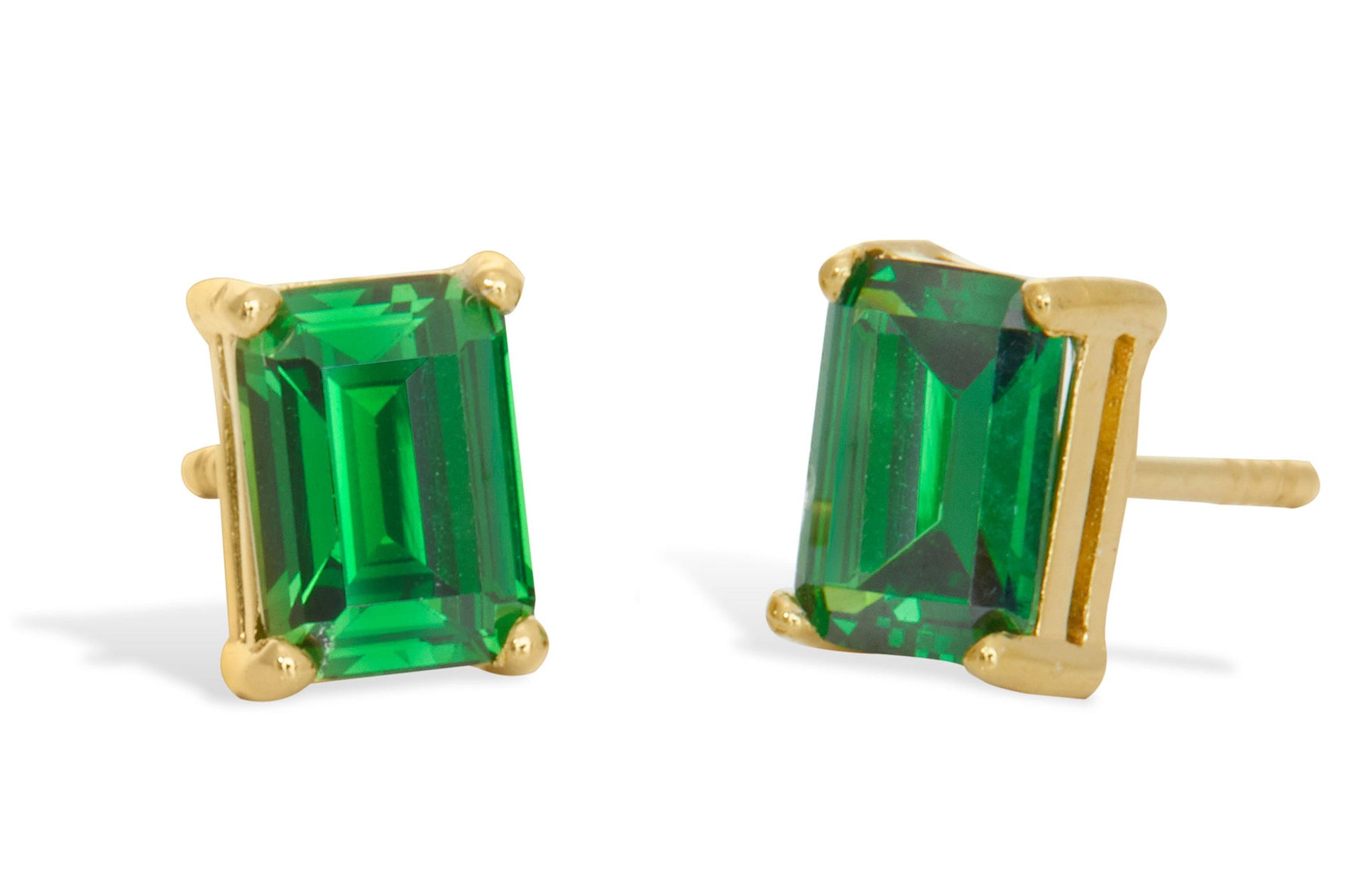 14KT Post And SS 6MM Princess Cut Stud Earrings