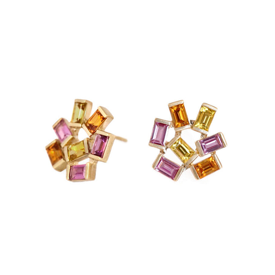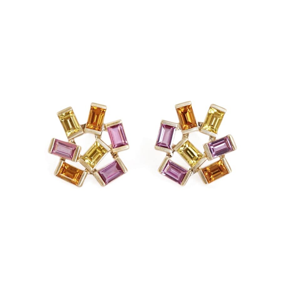 Large Jubilation Studs - Pink, Yellow and Orange Sapphire