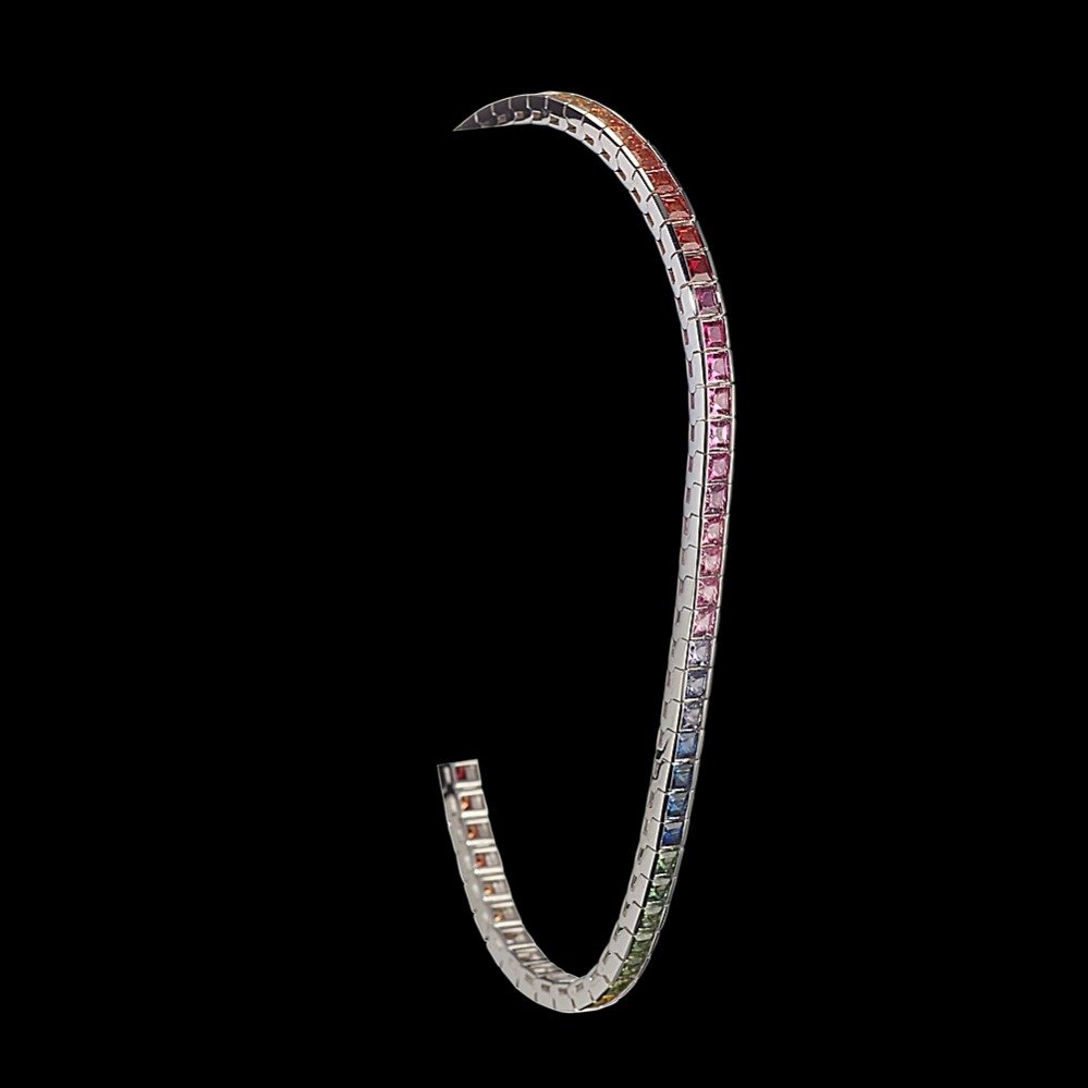 Princess Cut Rainbow Sapphire Tennis Bracelet