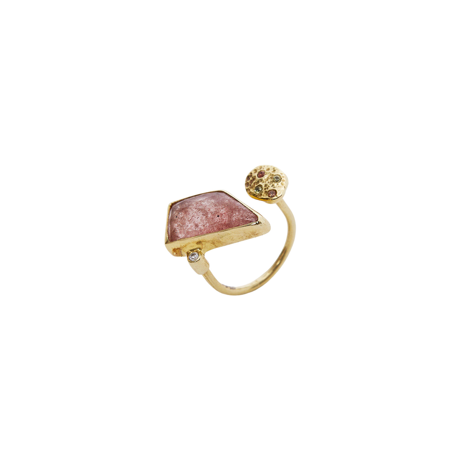 Natural Real Double Circle Turmaline Sterling Silver Gold Plated Ring