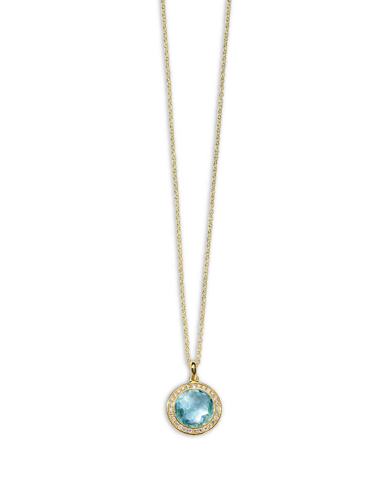18K Gold Lollipop® Mini Pendant Necklace in Blue Topaz with Pavé Diamonds, 16-18'