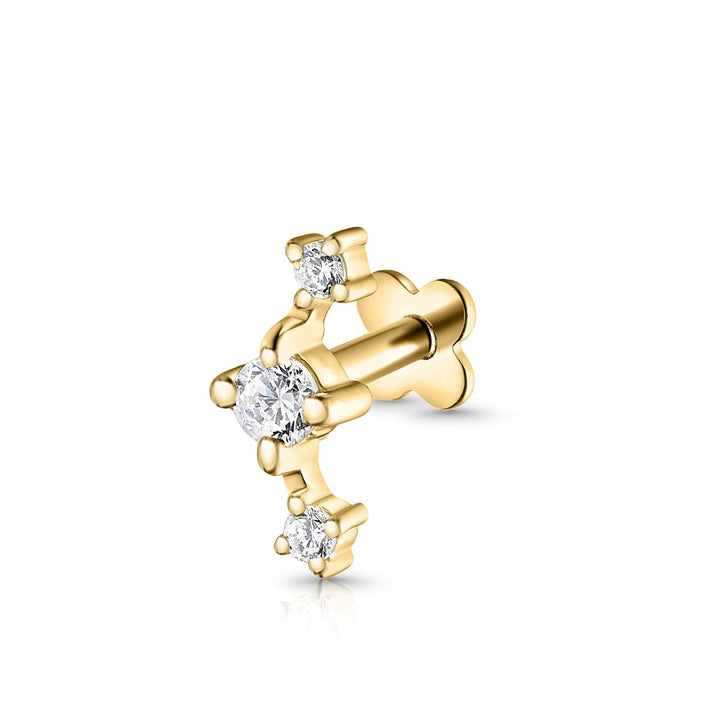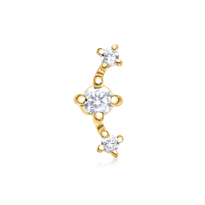 At the heart of the Lisa Eleni brand is a founding couple from Vienna and their shared passion for fine jewelry. Lisa serves as creative designer, bringing her artistic touch, while Thomas oversees finances and marketing. Together, they have built a brand that stands for unique design and enduring gold jewelry. Lisa Eleni aims for their affordable yet high-quality pieces to maintain their shine for a lifetime. All jewelry is made in small batches.Style notes: The Flat Ear Piercing can be worn as a helix, high lobe, conch and tragus piercing in addition to the flat piercing position. The curved shape makes the Flat Ear Piercing versatile. The internal thread with twist lock and flat back ensures maximum wearing comfort and additionally cannot get lost. The Ear Piercing has a large zirconia stone in the center and is surrounded by two smaller stones.Price: Please note price may vary due to exchange rate differences or shipping, duties and taxes. Price may also vary with materials choice. Final price is calculated at checkout at the designer's website. Note: Price is for a pair. Also sold as single.Materials: Available in 14k white or yellow gold with cubic zirconia.Dimensions: Gauge size - 1.2mm, Length - 6mm, Size - 9mm.