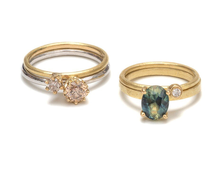 Shimara's work has been inspired by natural forms, primarily seed pods. She uses silver, 18k gold, gum nuts and a dazzling array of precious stones to create her tactile jewellery. While keeping her organic style, Shimara has created a simple yet unique collection of precious rings, including a range of wedding and engagement rings, some incorporating elements of her stacking rings, all combining subtle texture with a variety of stones in rich beautiful colours, particularly greys, blues and greens.