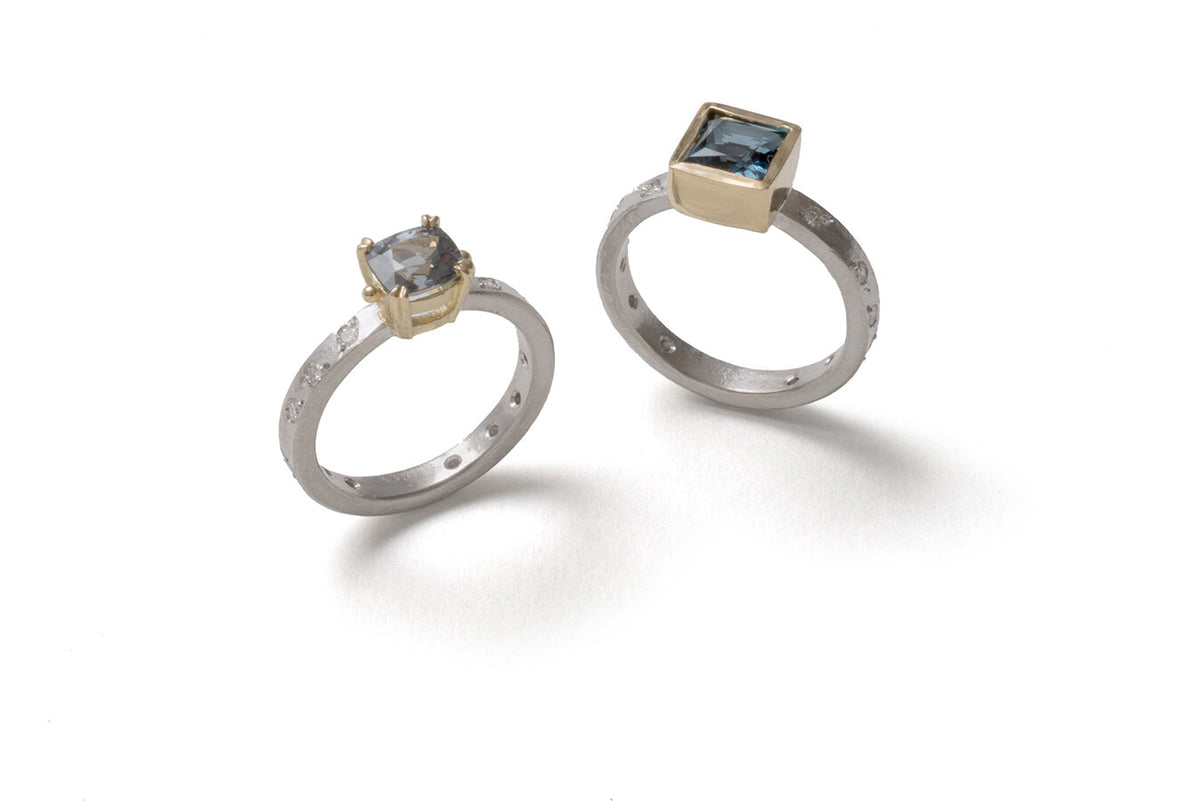 Shimara's work has been inspired by natural forms, primarily seed pods. She uses silver, 18k gold, gum nuts and a dazzling array of precious stones to create her tactile jewellery. While keeping her organic style, Shimara has created a simple yet unique collection of precious rings, including a range of wedding and engagement rings, some incorporating elements of her stacking rings, all combining subtle texture with a variety of stones in rich beautiful colours, particularly greys, blues and greens.