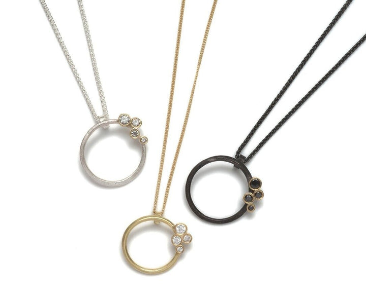 Oxidised Silver Hoop Pendant Necklace with Black Diamonds