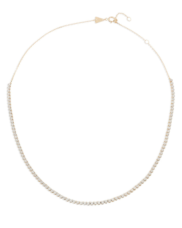 14K Yellow Gold Diamond Half Riviera Necklace, 14-16"