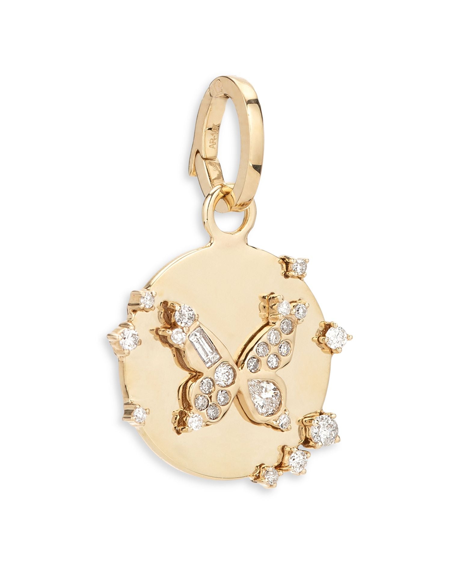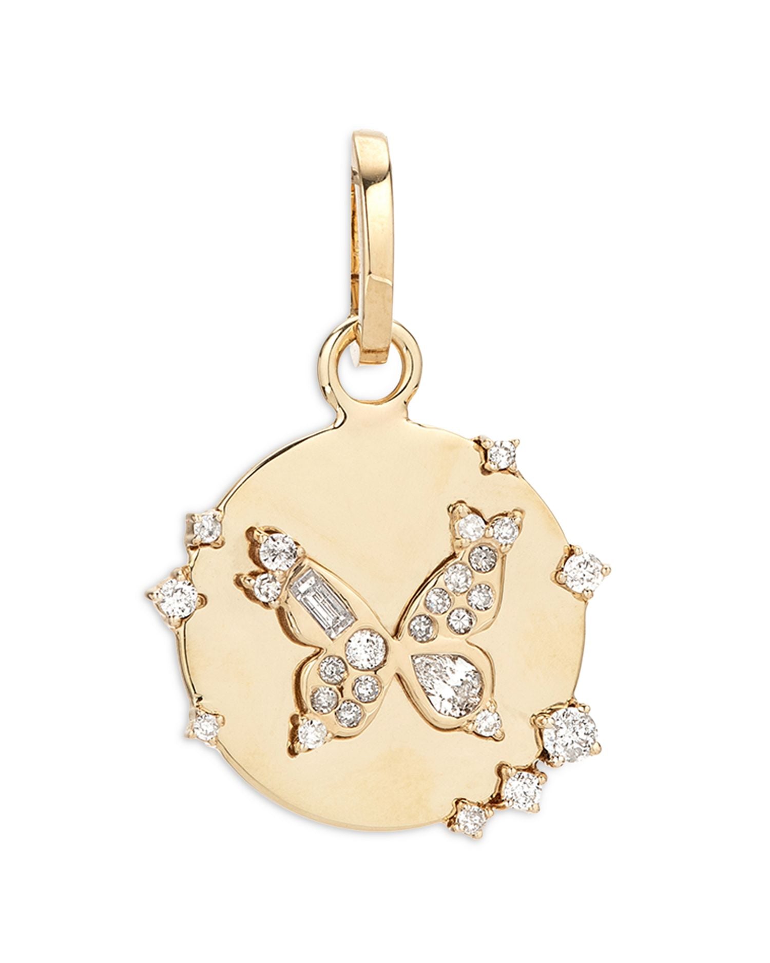 14K Yellow Gold Diamond Multi Cut Butterfly Hinged Charm Pendant