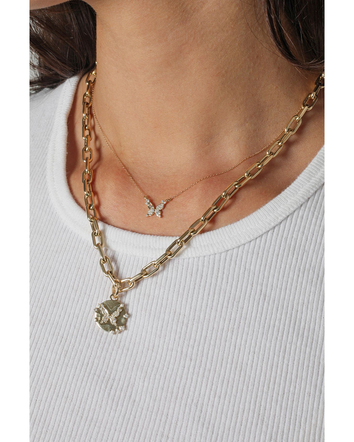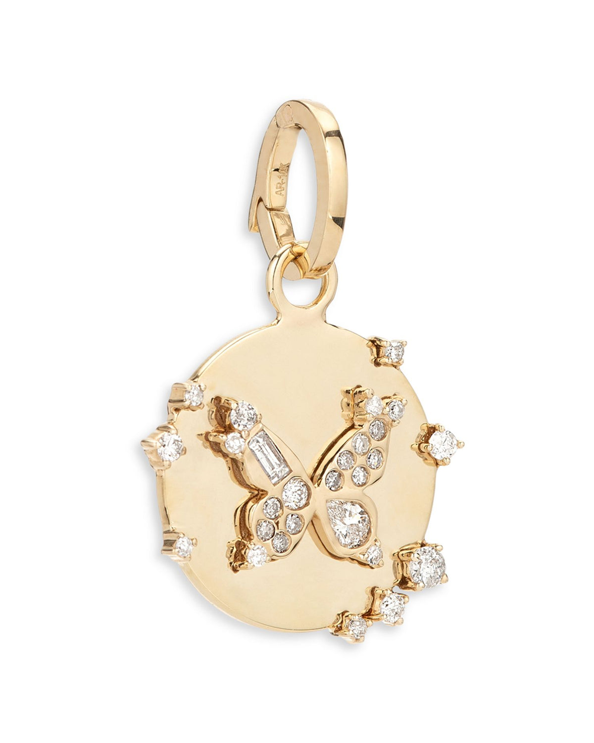 This 14K Yellow Gold Diamond Multi Cut Butterfly Hinged Charm Pendant by Adina Reyter is a graceful and elegant piece, showcasing a butterfly design crafted with mixed cut diamonds. Its hinged style allows for versatile wear on chains or charm bracelets.