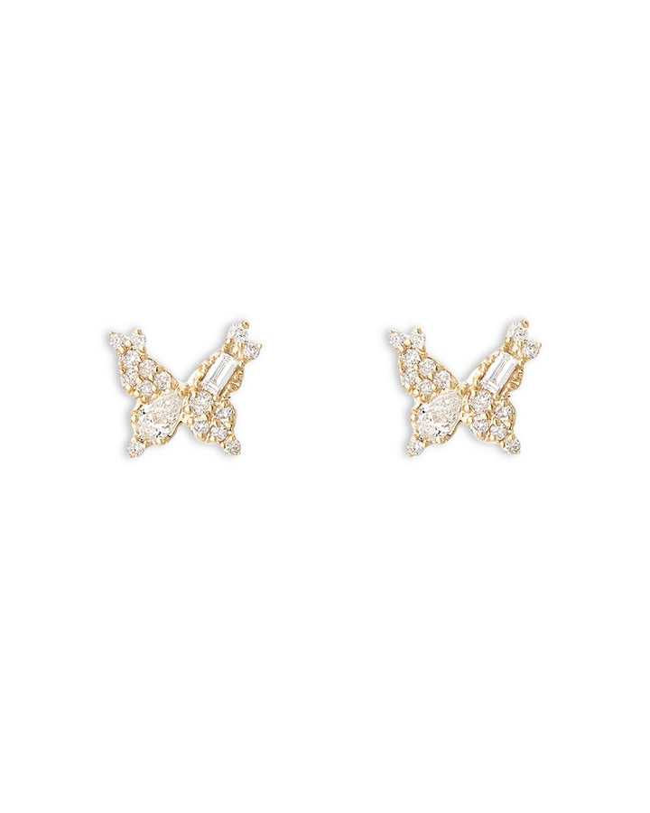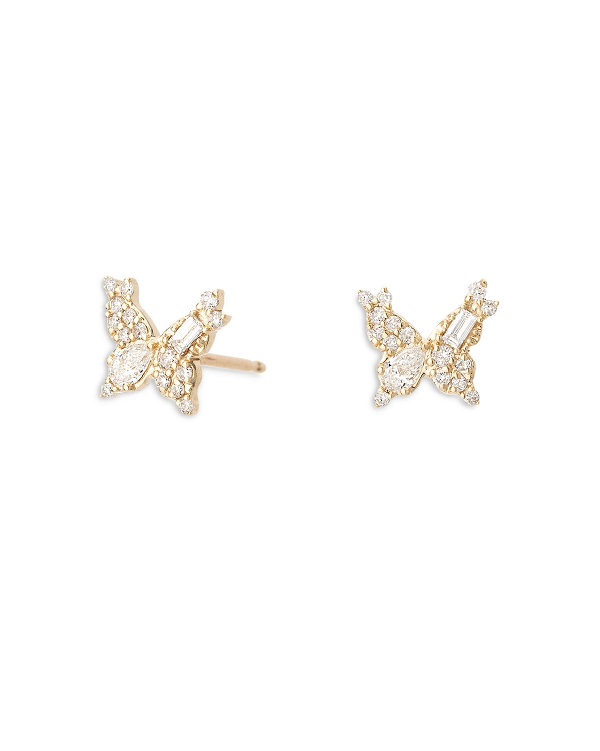14K Yellow Gold Diamond Multi Cut Butterfly Stud Earrings