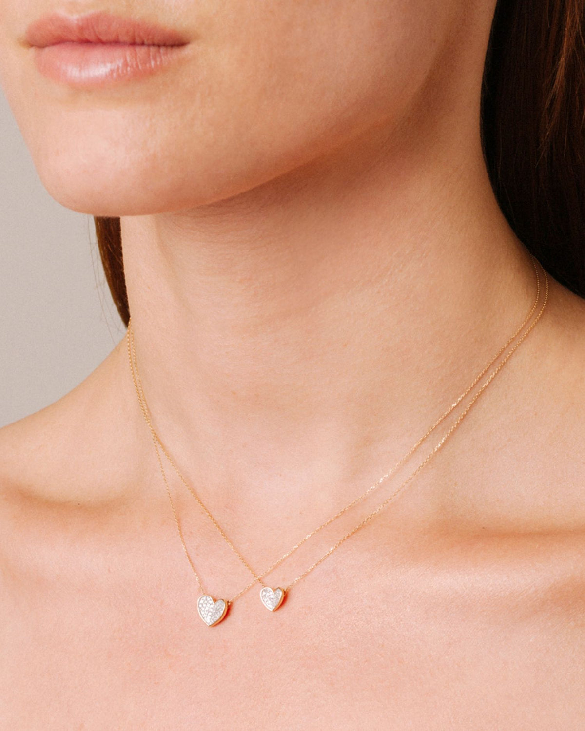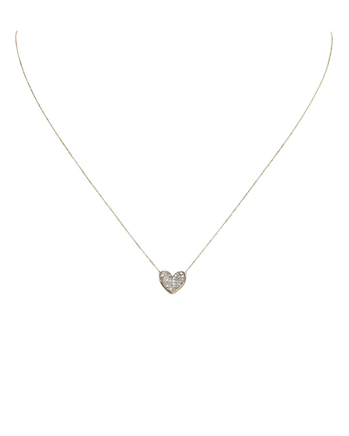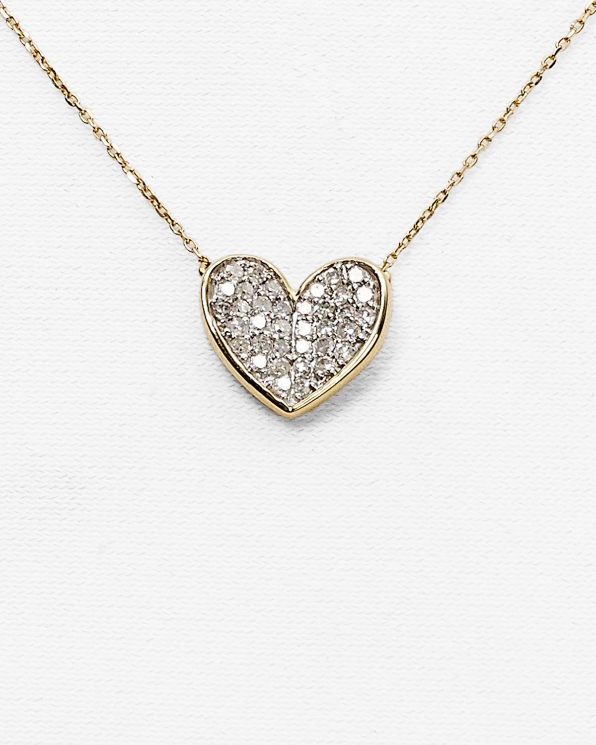 14K Yellow Gold Folded Heart Pendant Necklace with Diamonds, 14'