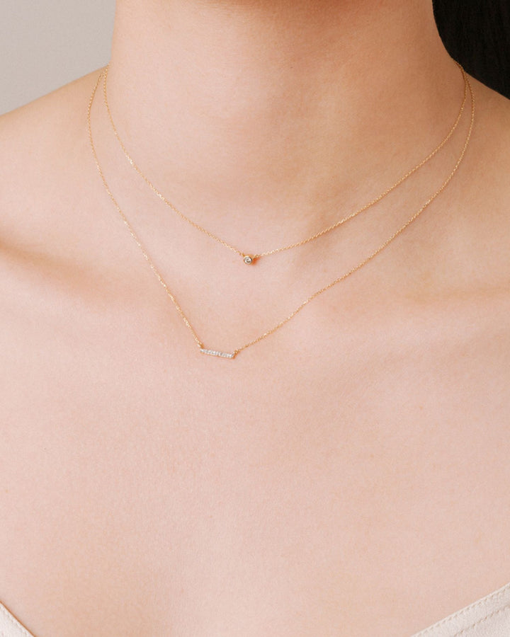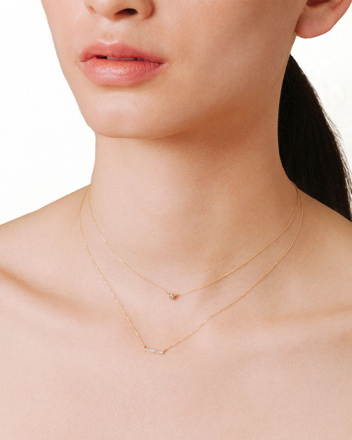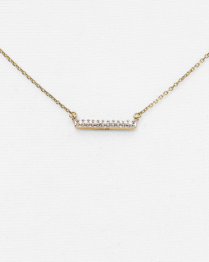 This Diamond Pavé Bar Pendant Necklace, 15' by Adina Reyter is a delicate yet dazzling addition to any layered necklace look. The diamond pavé bar pendant adds a hint of sparkle, perfect for both casual and formal occasions.