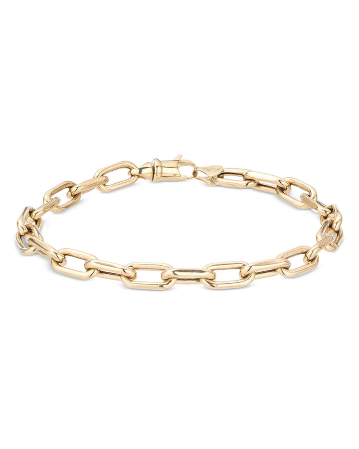 This 14K Yellow Gold Oval Link Bracelet by Adina Reyter exudes timeless luxury with its polished oval chain links. A versatile piece, it adds sophistication to both casual and formal looks.