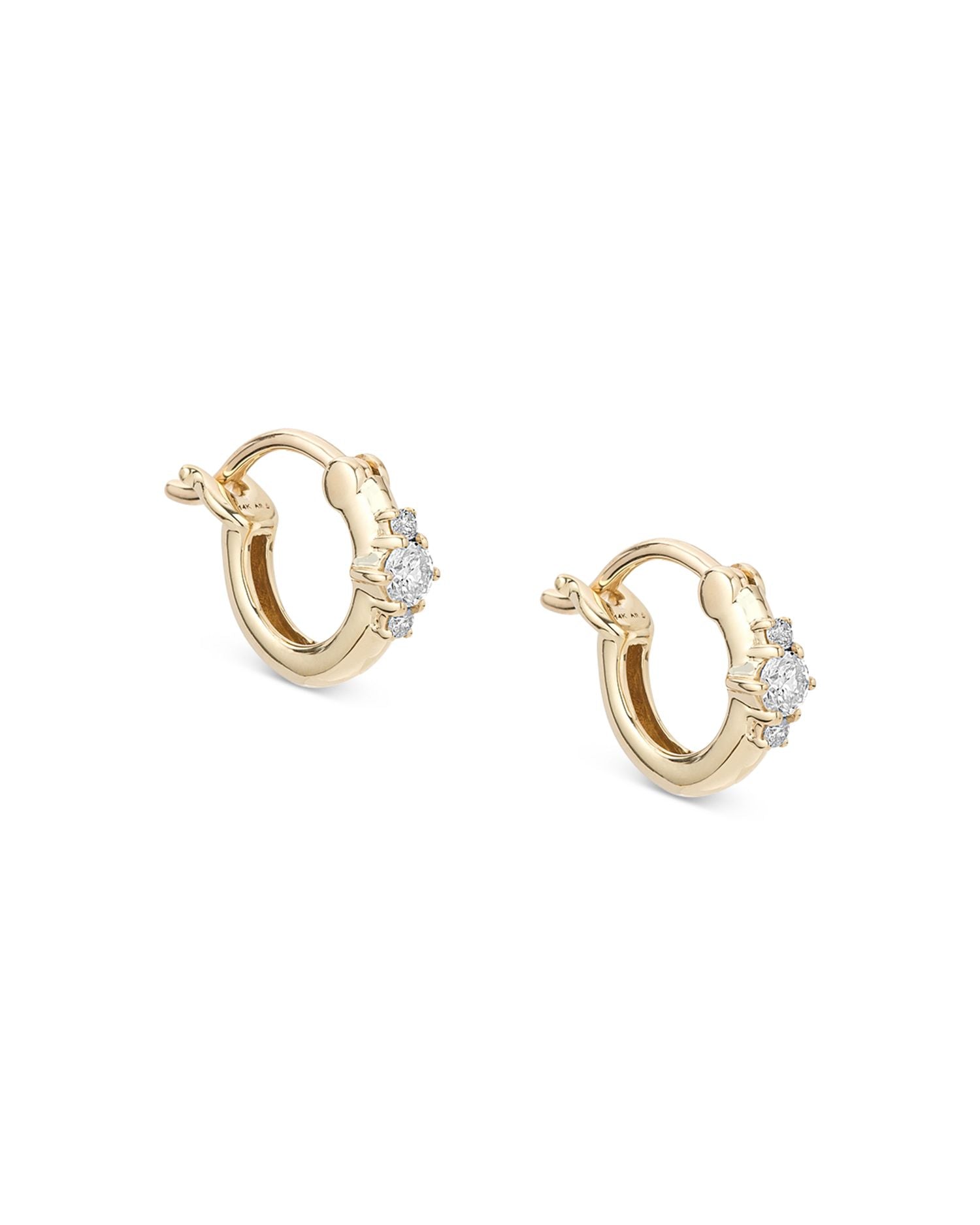 These 14K Yellow Gold Paris Diamond Trio Huggie Hoop Earrings by Adina Reyter from the Paris collection offer understated elegance. Featuring a trio of sparkling diamonds, these delicate hoops are perfect for everyday wear or special occasions.
