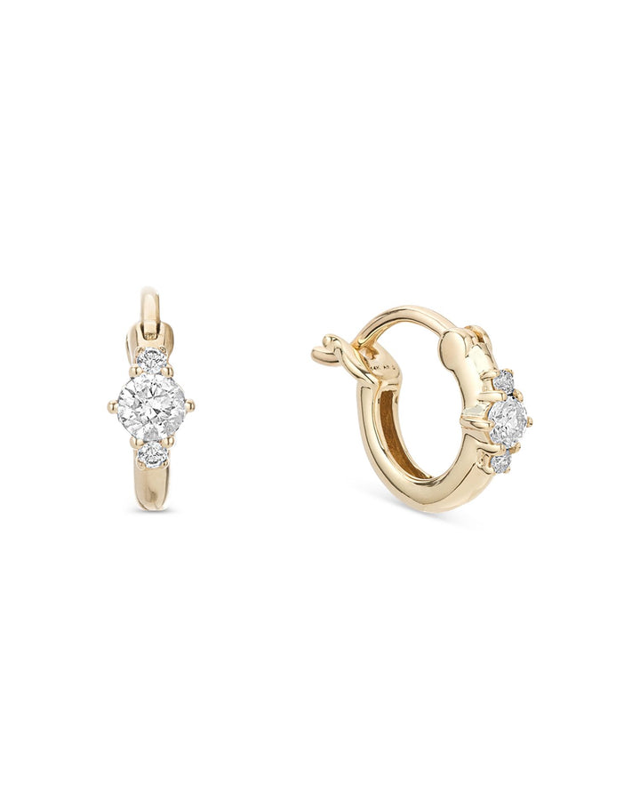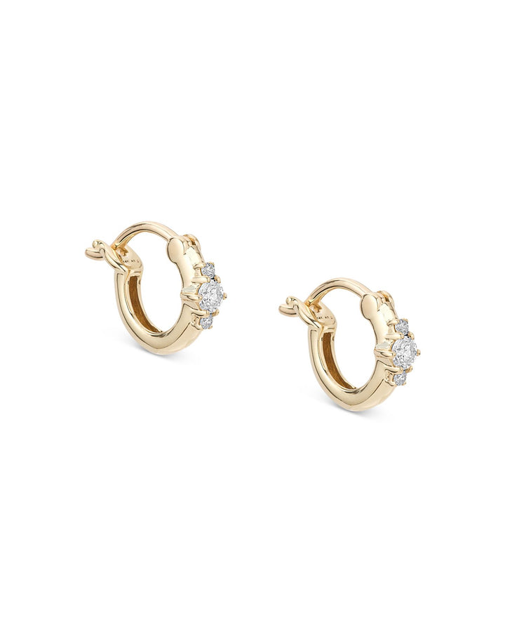 14K Yellow Gold Paris Diamond Trio Huggie Hoop Earrings