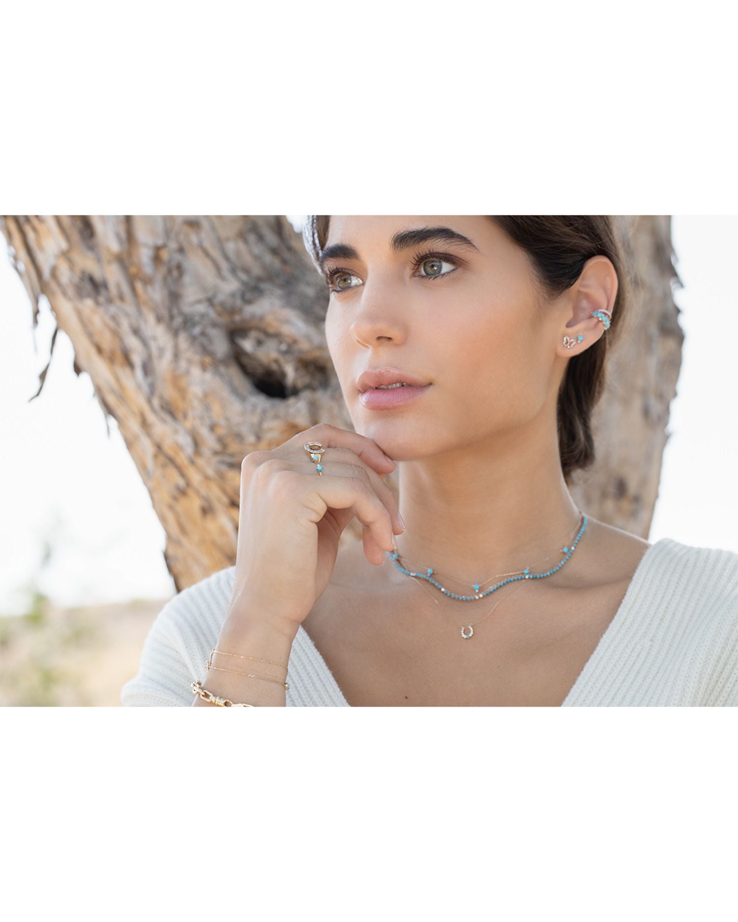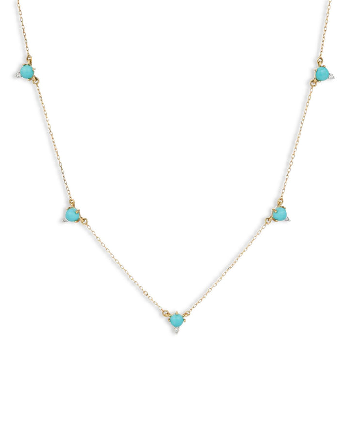 This 14K Yellow Gold Turquoise & Diamond Station Necklace, 16' by Adina Reyter combines vibrant turquoise with the subtle sparkle of diamonds. Perfect for layering or wearing solo, this necklace offers a touch of timeless elegance.