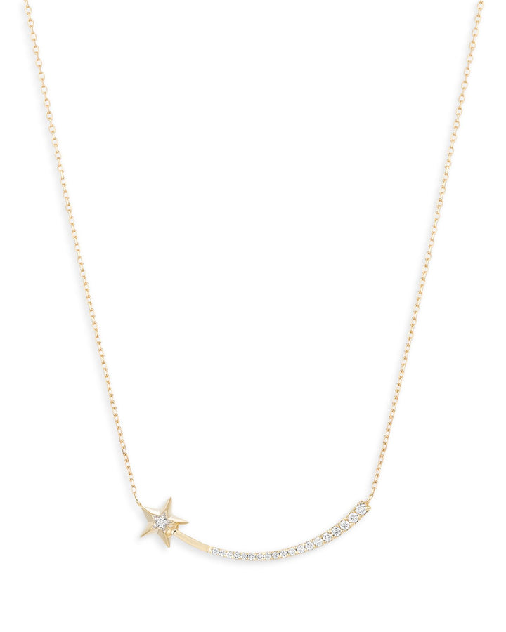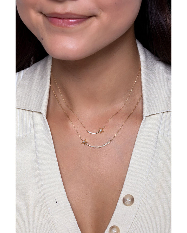 14K Yellow Gold Shooting Star Diamond Large Pavé Curve Necklace, 15-16'