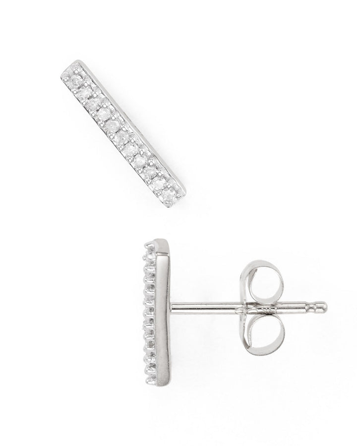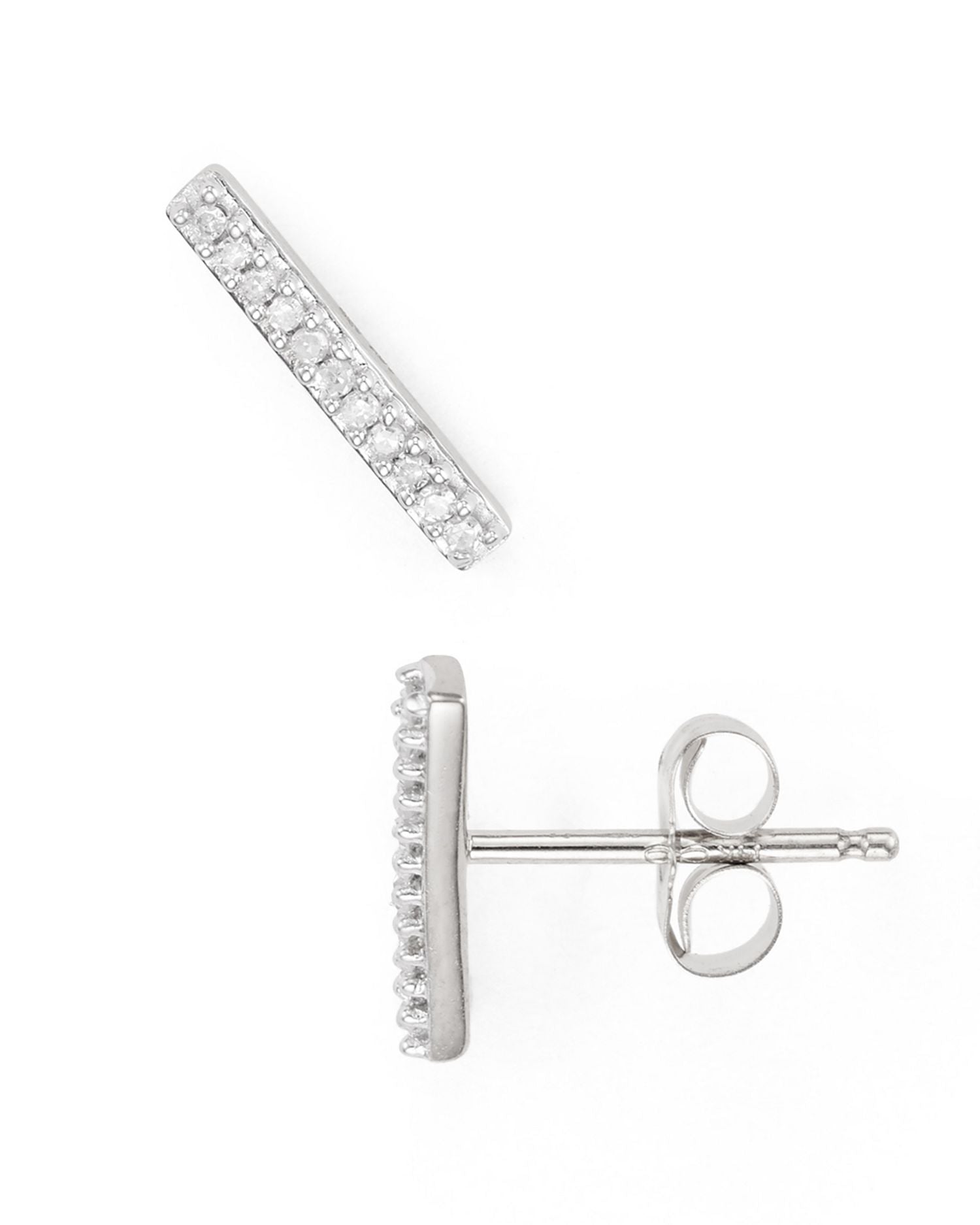 14K White Gold Pavé Diamond Bar Stud Earrings