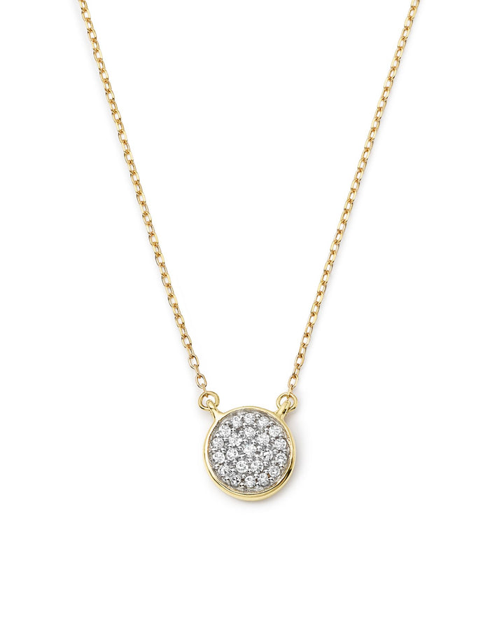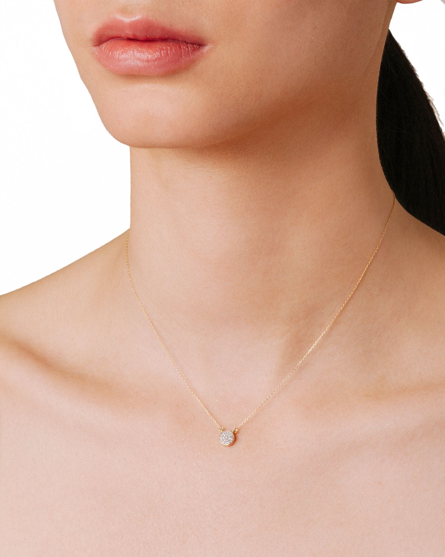 14K Gold Pavé Diamond Disc Necklace, 15'