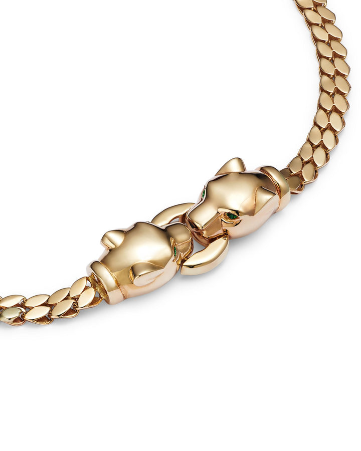 14K Yellow Gold Emerald Eye Panther Bracelet