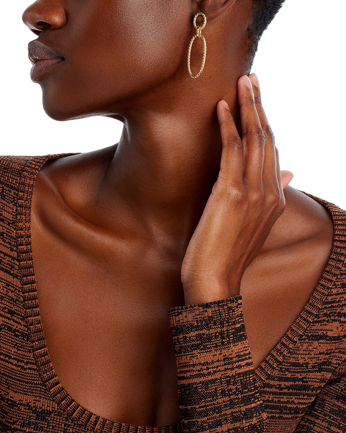 14K Yellow Gold Textured Oval Drop Earrings
