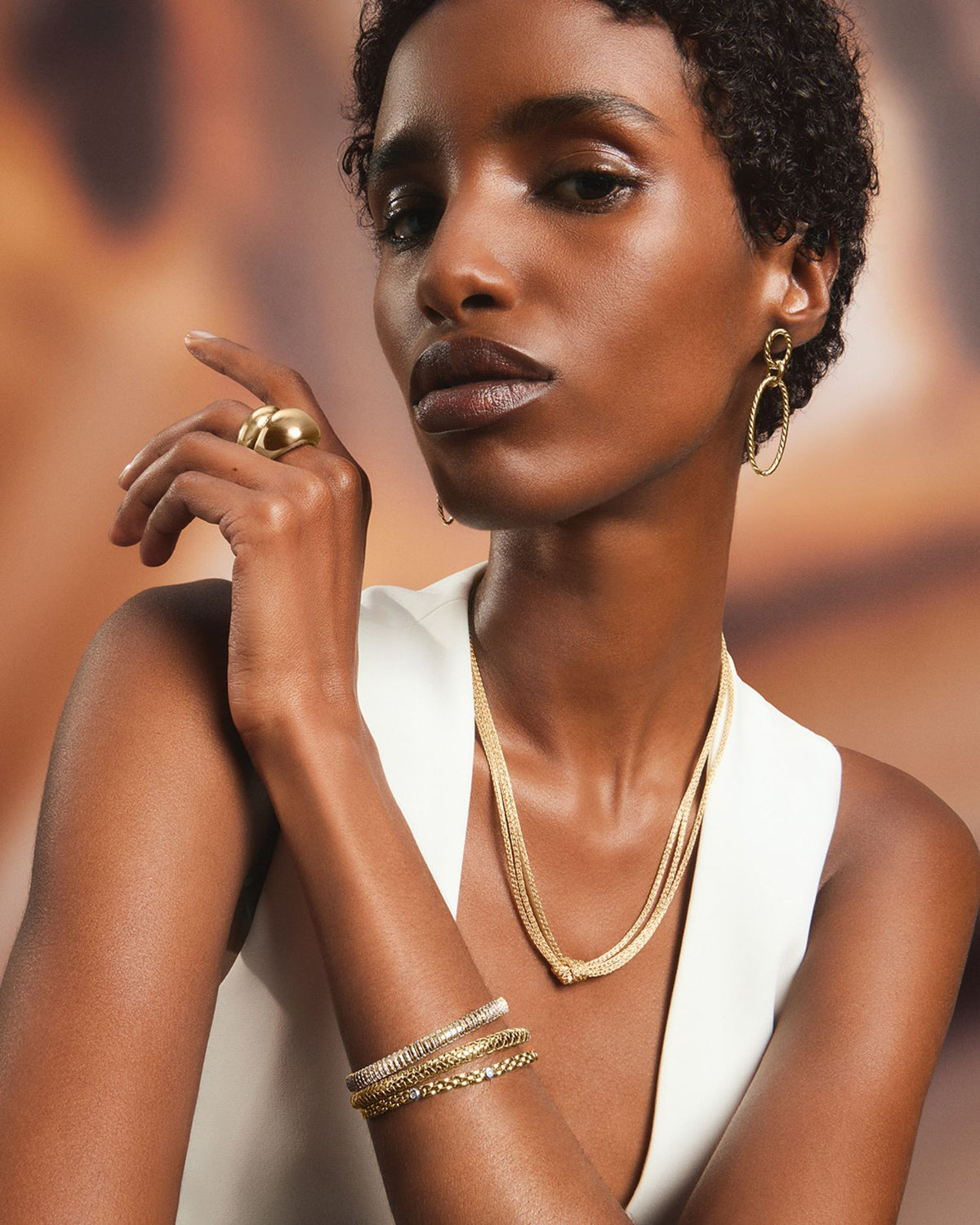 Alberto Amati is a fine jewelry brand known for its elegant designs crafted in 14K gold, including yellow, white, and two-tone pieces. The brand offers a diverse range of jewelry, such as necklaces, bracelets, rings, and earrings, often featuring intricate link patterns, polished finishes, and occasional gemstone accents.