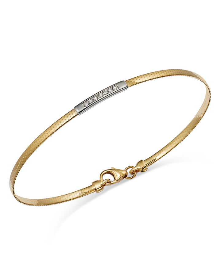 Made from 14K yellow gold, adorned with diamonds totaling 0.06 ct. t.w.. Bracelet measures 7'L and is secured with a lobster clasp closure. Made in Italy. All carat weights are approximate, with a variance of 0.05 carat.